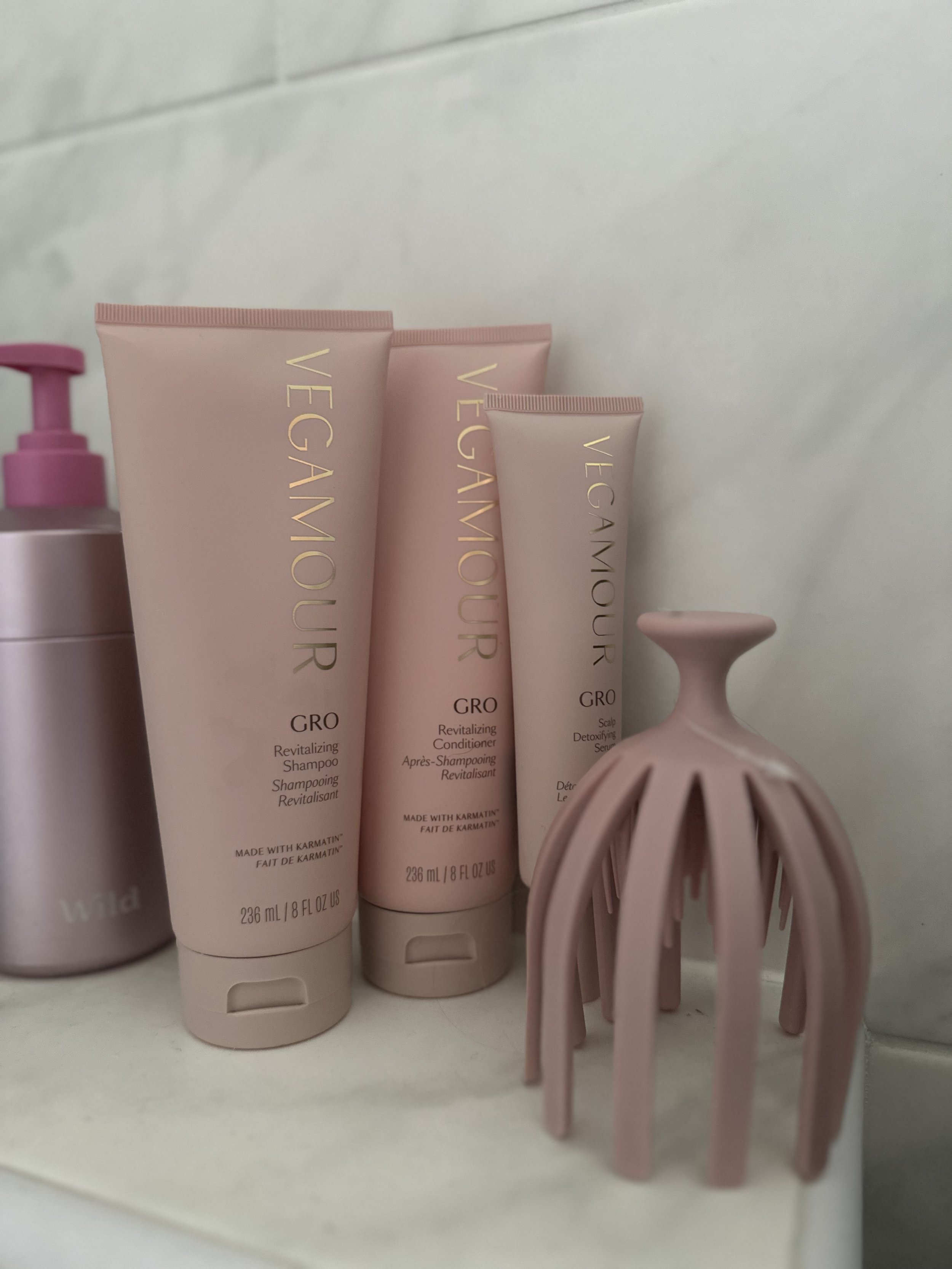 After incorporating Vegamour's products into my hair care routine for a few weeks, I noticed a positive difference. The GRO Scalp Detoxifying Serum helped nourish my scalp, reducing itchiness and flakiness, which is a common issue for me. The GRO Revitalizing Shampoo and Conditioner left my hair feeling soft and looking shinier without weighing it down.