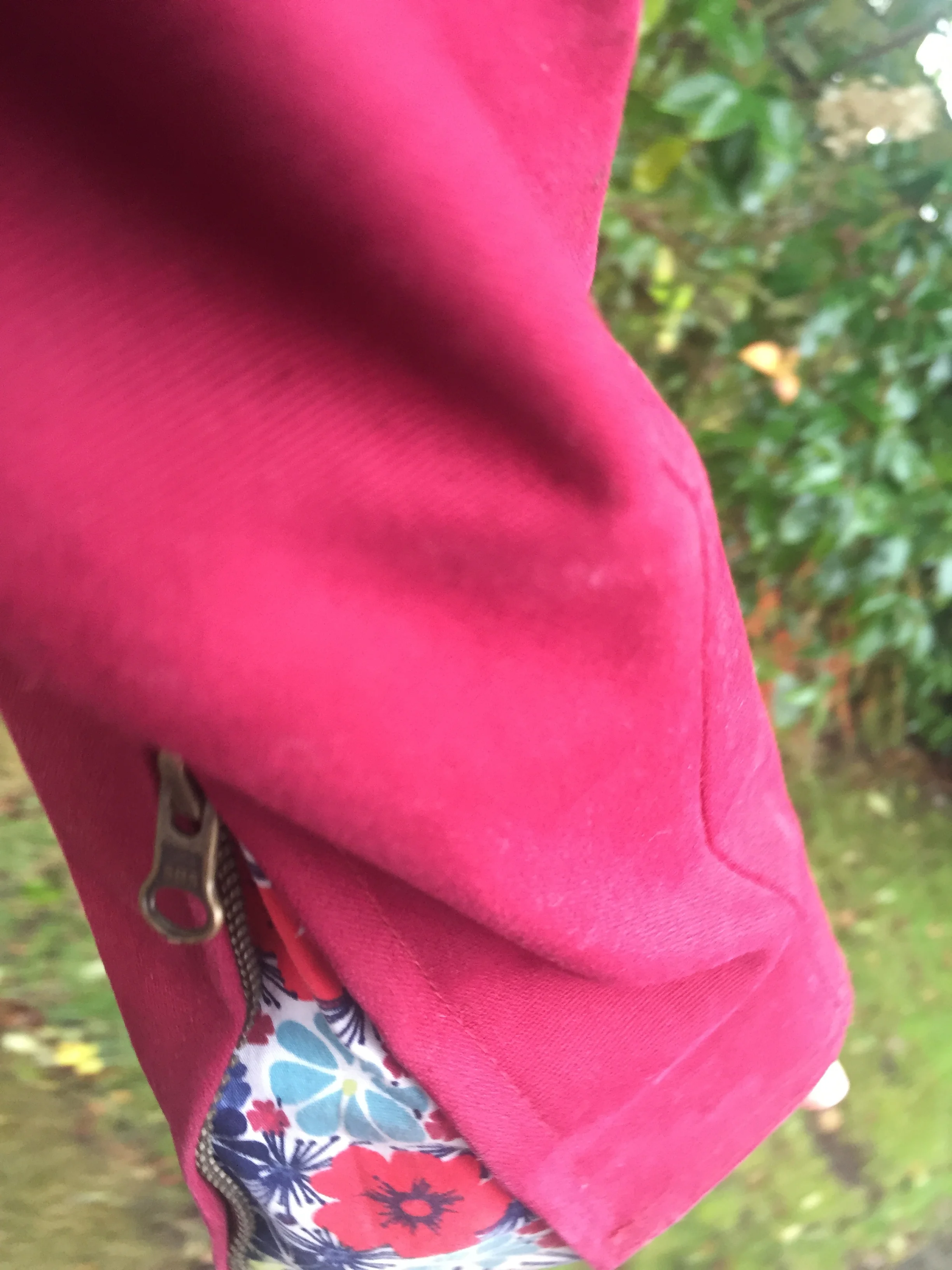 This lovely coat is 100% waterproof, made from organic cotton and comes with a two-year guarantee. The cut of the Kendal Jacket is a perfect fit for me and the attention to detail is lovely. The floral lining adds an appealing layer/texture to the coat, along with the zipped cuffs that open showing some of the floral lining, along with the brass poppers on the pocket. It also has adjustable snap straps on the sides that allow you to bring the waist of the coat into a more defined fit. The hood is removable and adjustable.