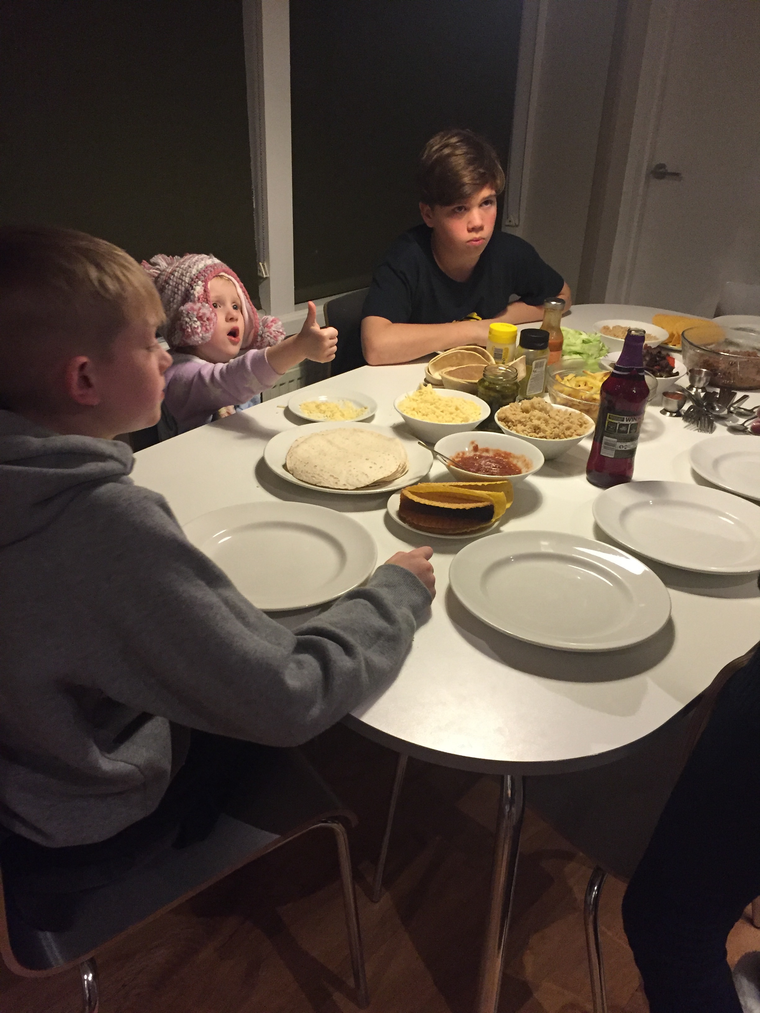 Our first evening, we unpack, settle down in our villa, light a log fire and have our friends round to eat.