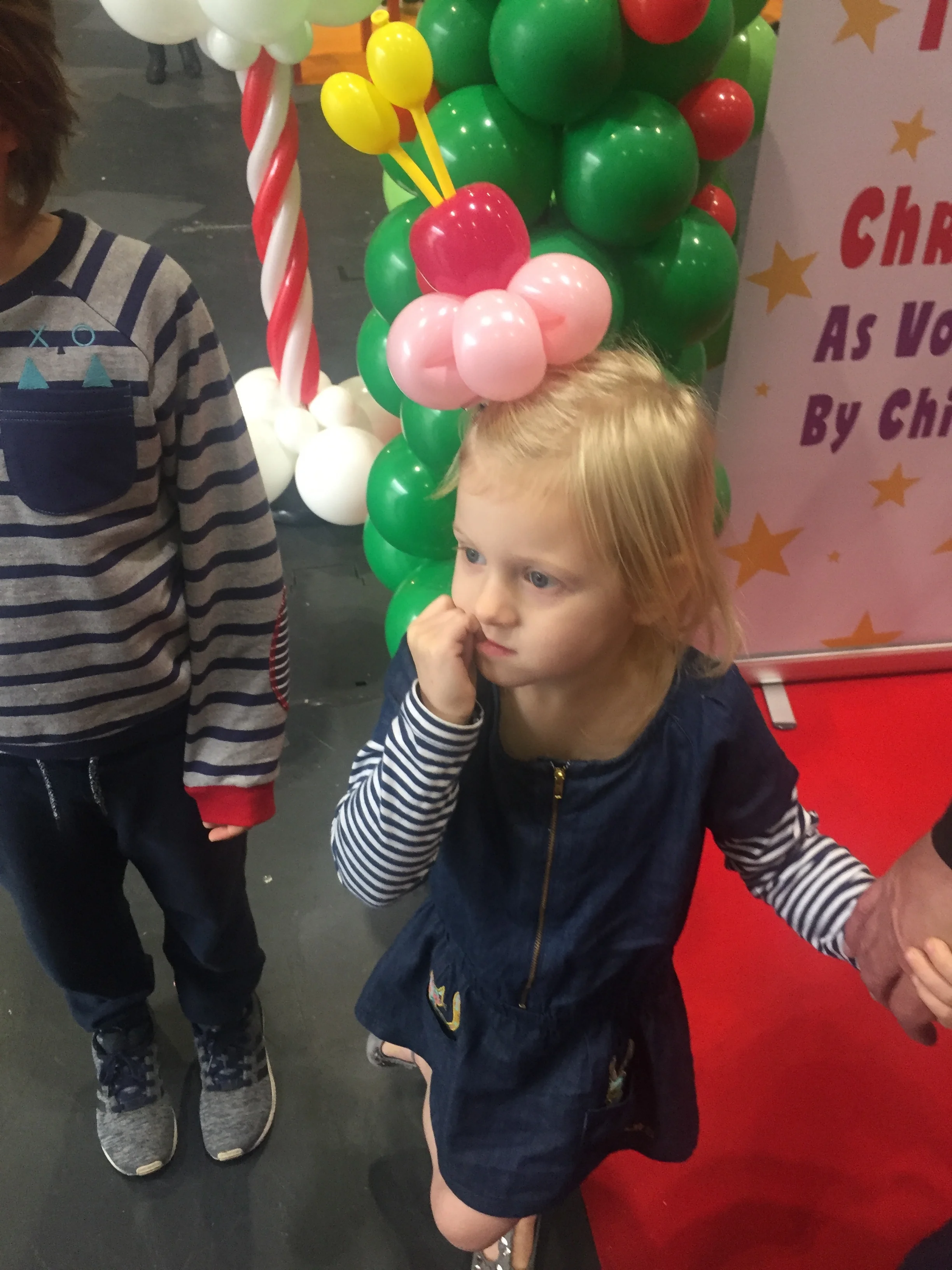 There were some amazing Balloon Sculptures around the event. We were lucky to meet the guy who made them, and he very kindly made Summer a balloon hat with hair clip attached, so she could wear it. And, he made Jacob a really cool green allien which Jacob loved.