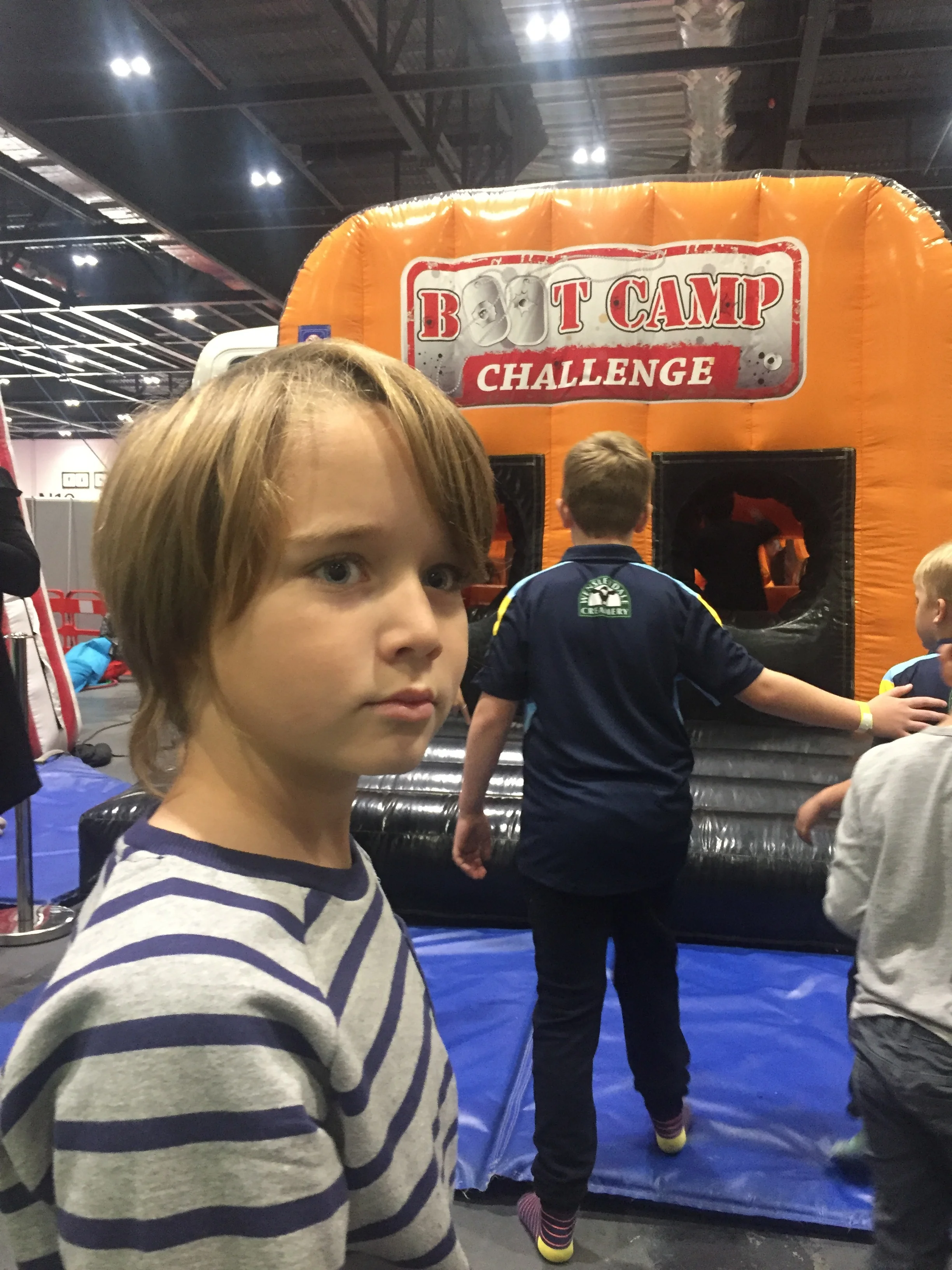There was lots to do, and Jacob took the Boot Camp bouncy castle assault course. He ran, jump and swung his way through.