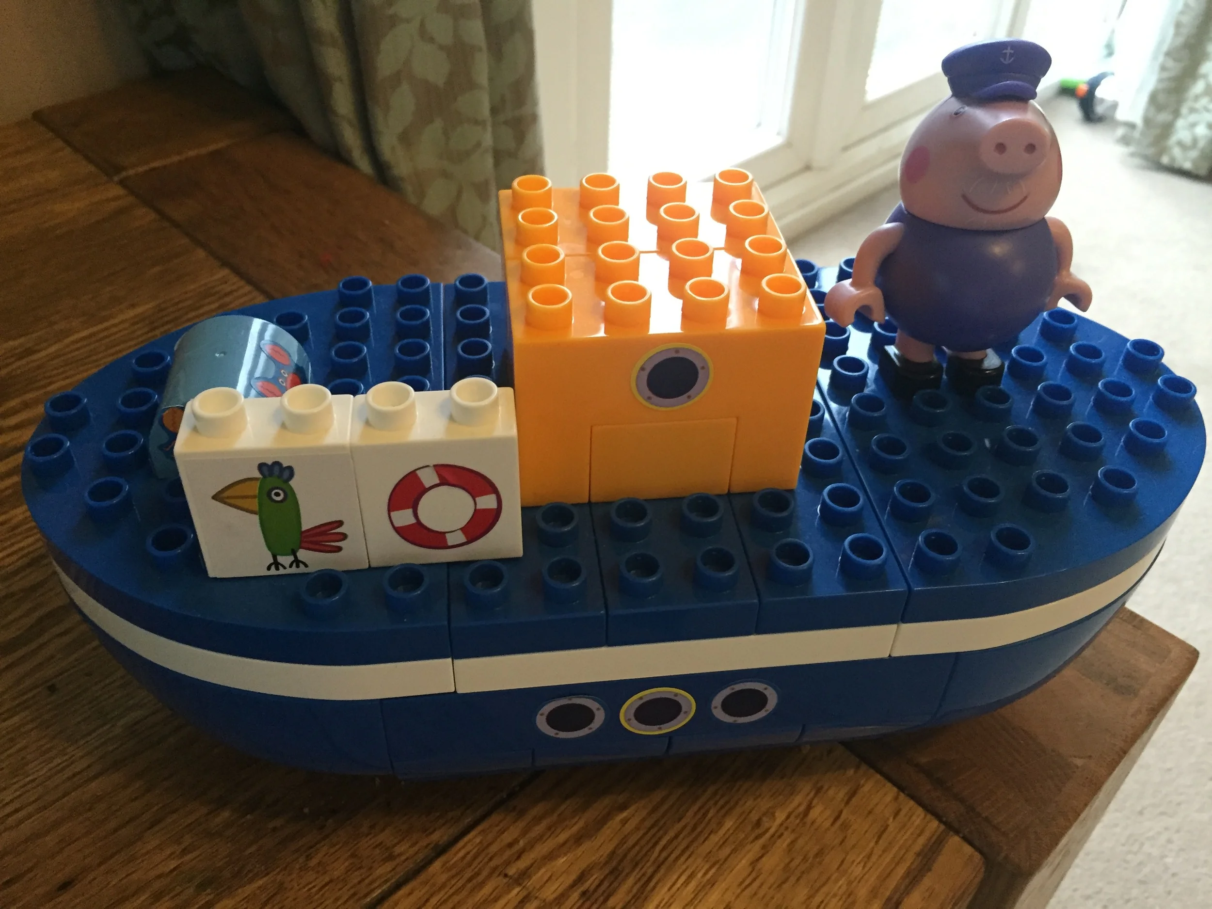 The finished boat is quite a solid construction with no worry about it falling apart whilst playing with it (like some construction toys), and the boat is on wheels, which allows you to push it around. And, of course, Grandpa Pig sits perfectly on the top.