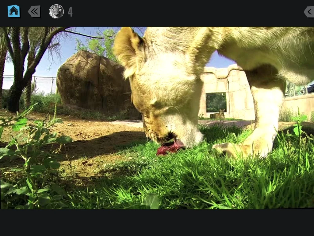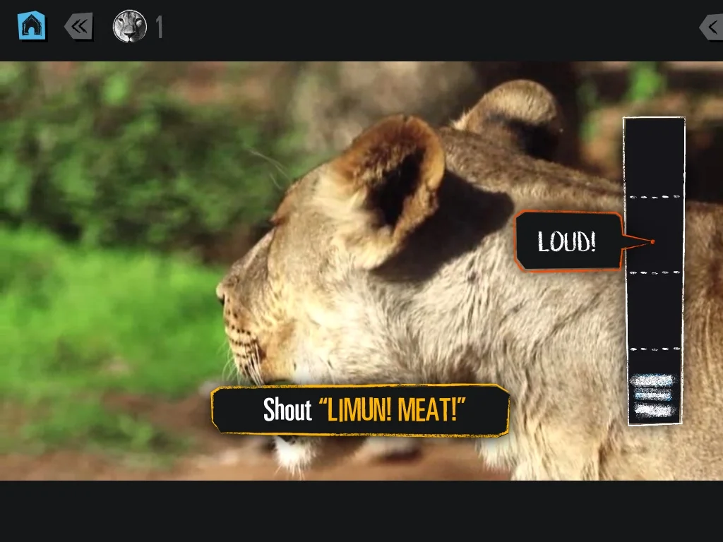 The game gets the child to interact by doing simple movements, tilts the iPad to drop a hunk of meat for Limun the lion to eat and they then have to shout into the iPad to attract her attention and Limun responds.