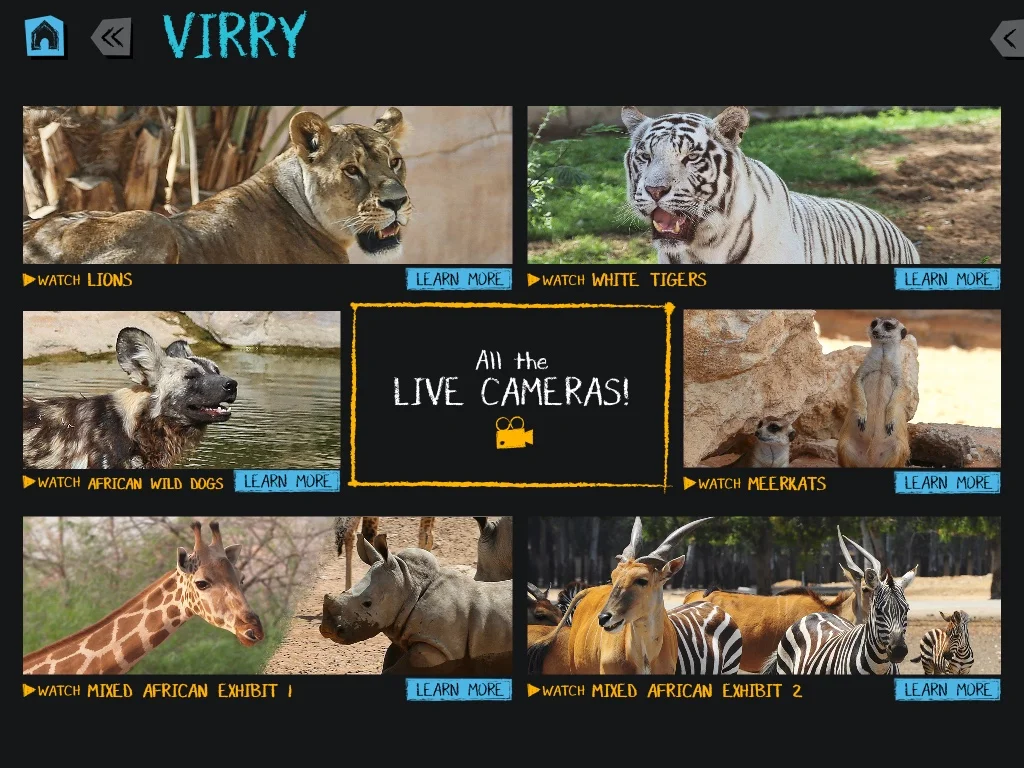 In addition to amazing live animal video feeds, remotely operated by experienced wildlife documentarians for BBC and Disney, what makes Virry different is that the game mechanics are built into raw film footage of real wild animals. This gives the children a whole new experience to interact and learn about the animal world - from lions and meerkats to giraffes and rhinos.
