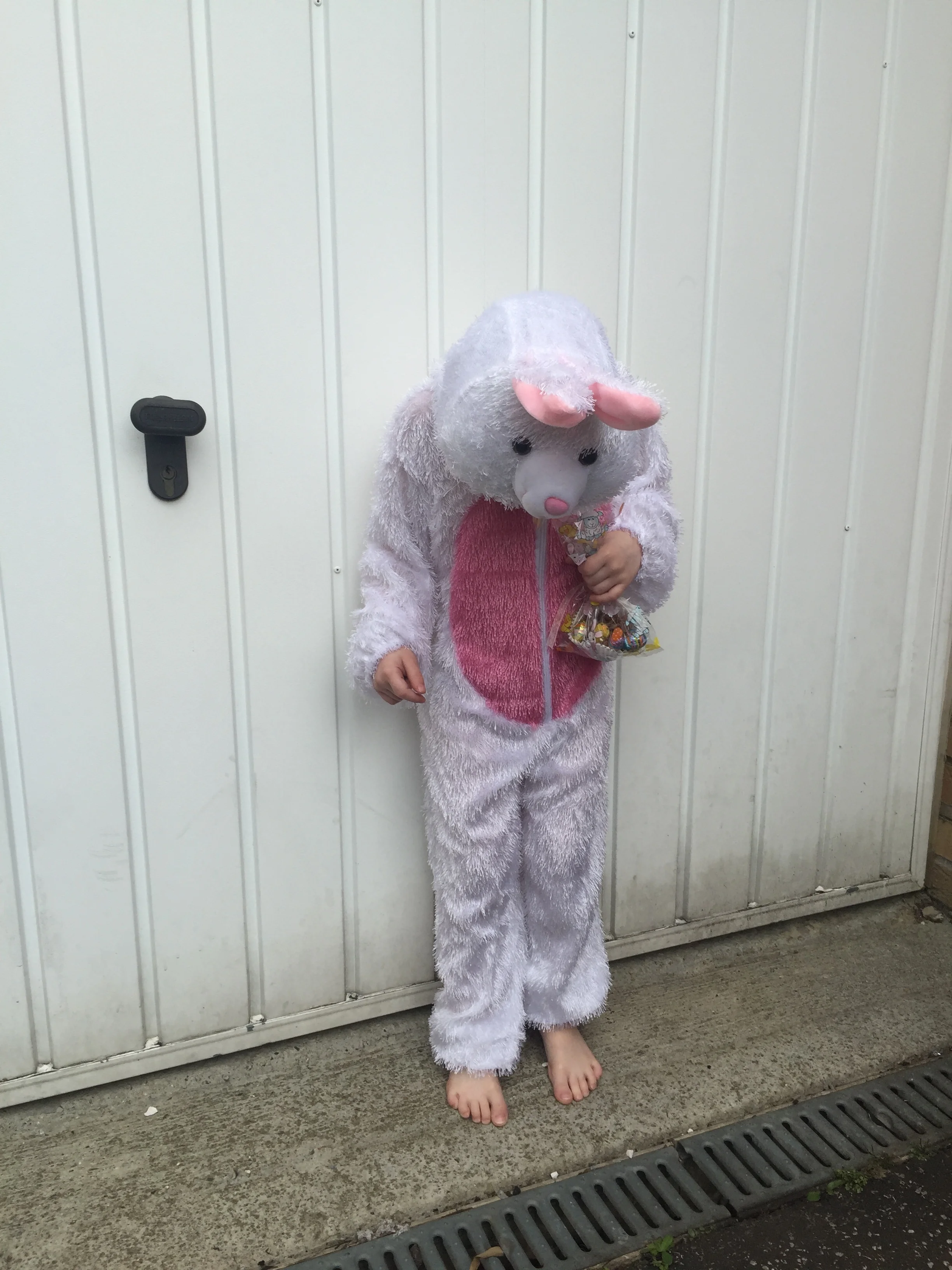 And, the only issue we've experienced with Summer's Bunny costume is, to her annoyance our puppy keeps chasing Summer around biting/pulling the bunny tail - it can be funny to start off with... until she wants Poppy to stop.