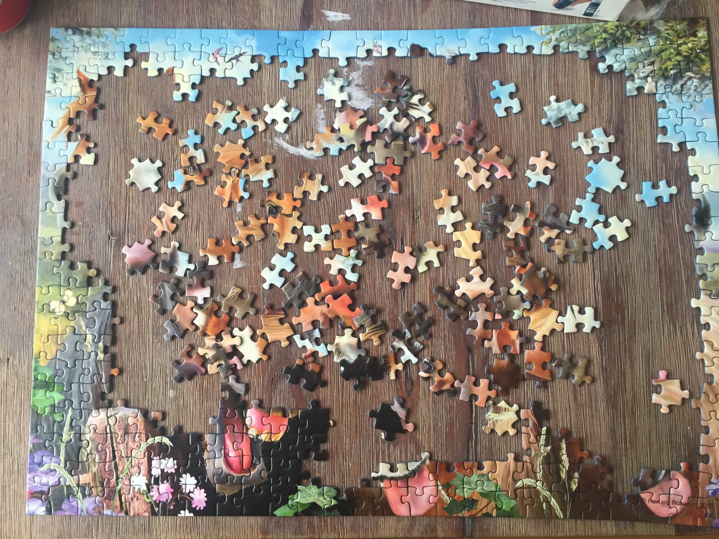 This Horsing Around puzzle includes 500 pieces, and as it had a lot of darker areas on the picture, similar shades of colours and patterns through the puzzle, thus, we found this one more challenging to complete. It also made us more determined and as the puzzle came together it was great fun seeing each horses funny 'selfie' pose.