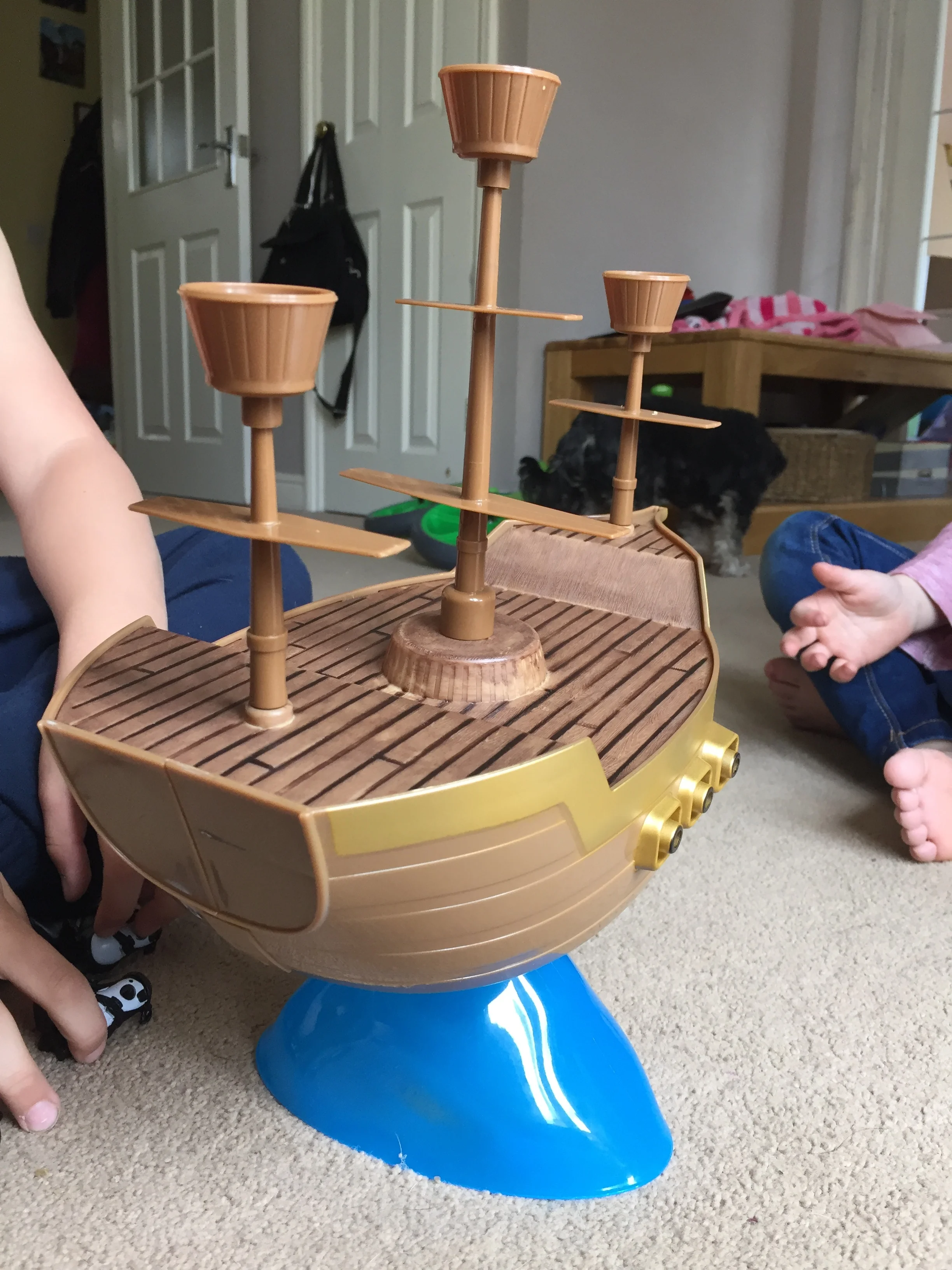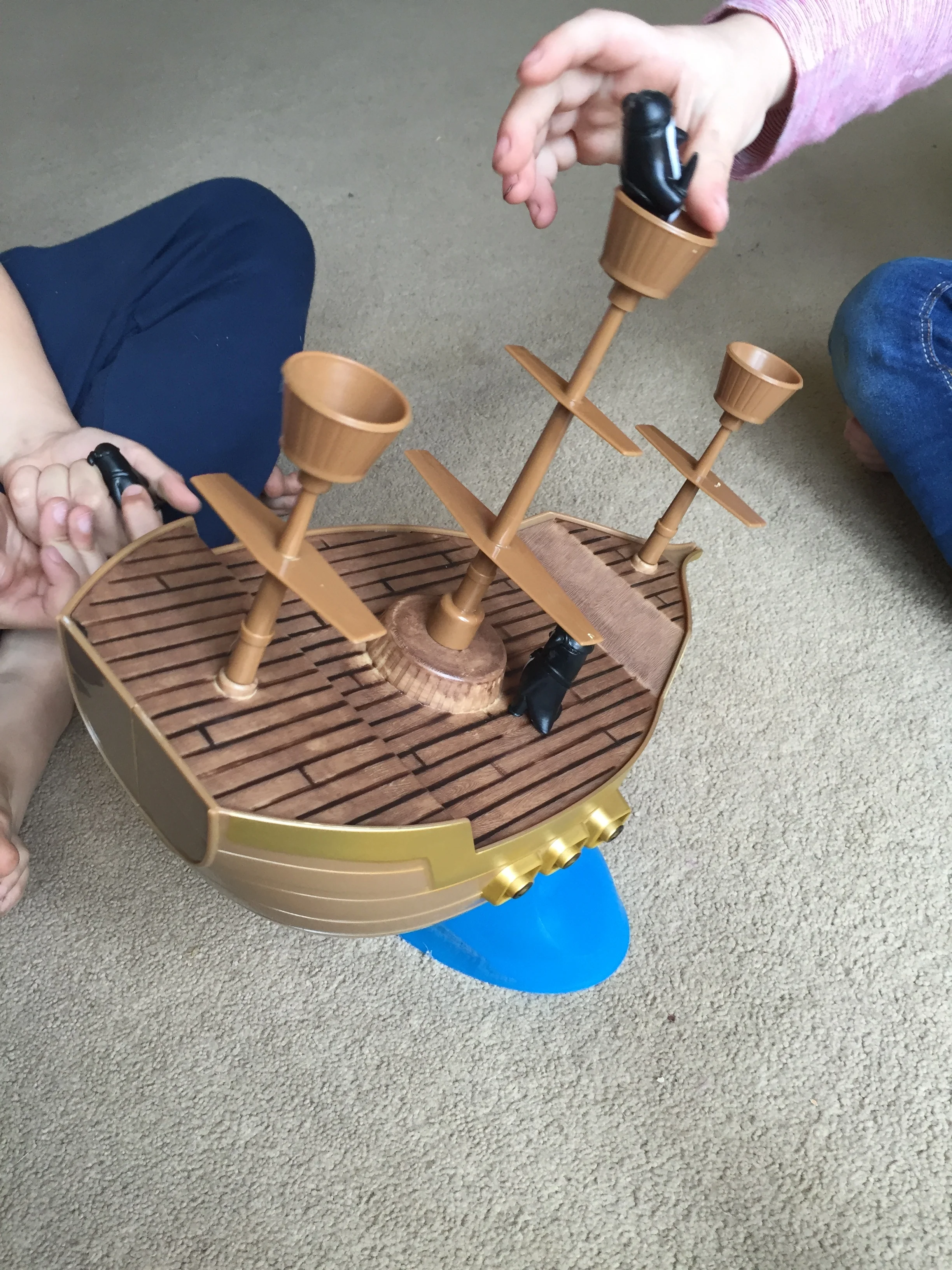 Each player takes a turn by balancing a pirate penguin anywhere on the ship without making it tip! You really do have to be careful, as it tips quite easily. And, if you rock the boat and send the penguins overboard, ye might have to walk the plank!