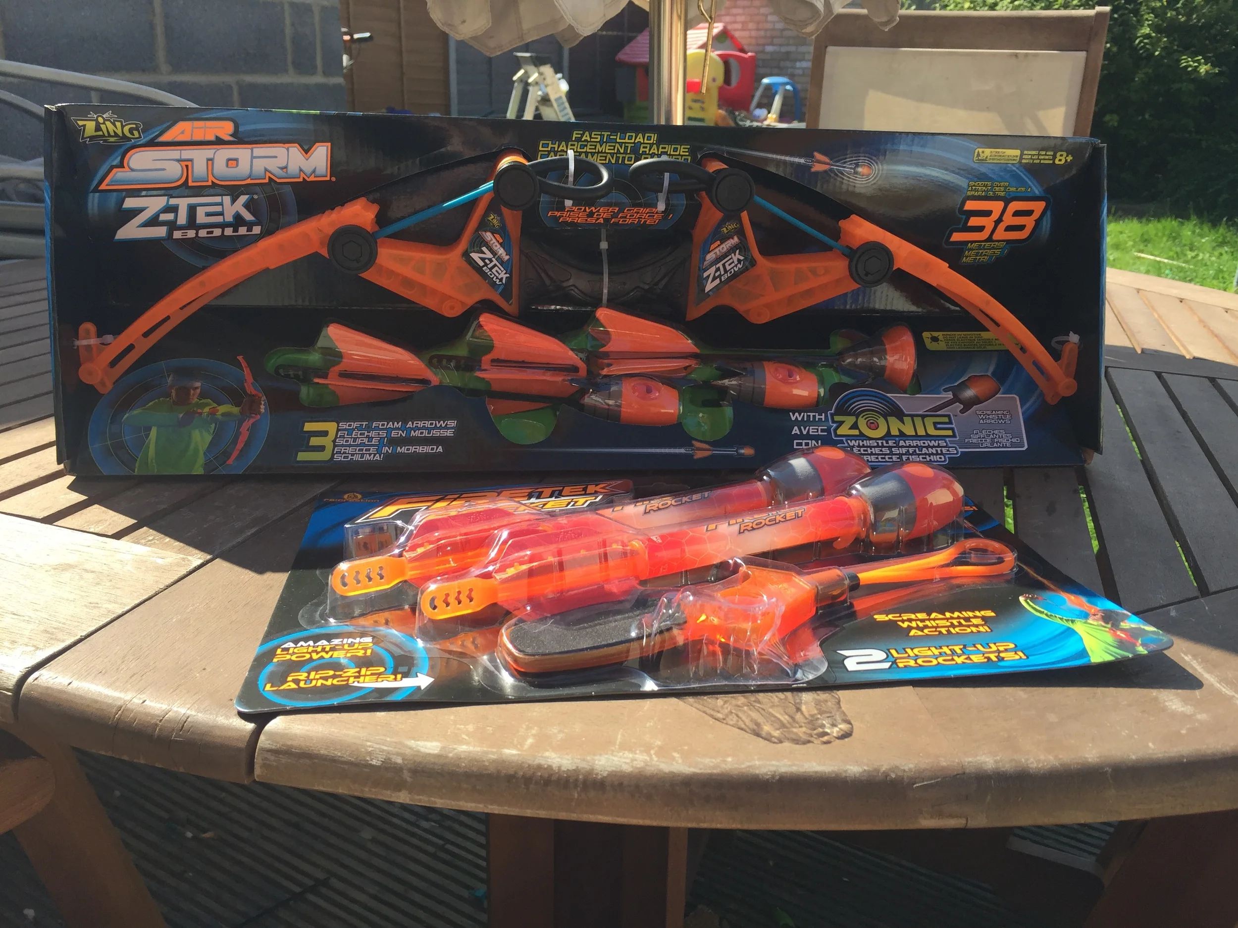 And they have been enjoying the new Air Storm toys - we were sent the Air Storm Z-Tek Bow and Air Storm Firetek Rockets for review: