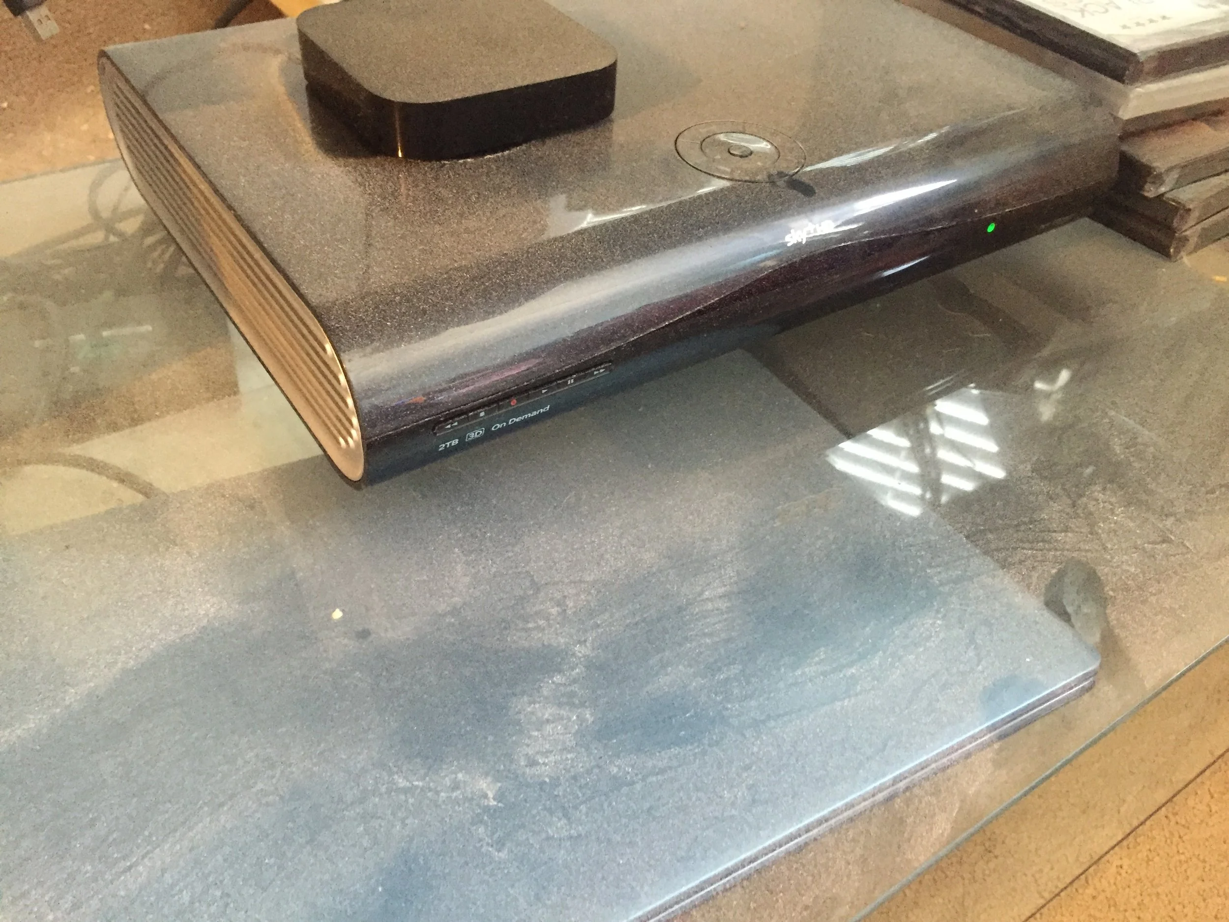 With all this going on for the past couple of months, we have been crammed into our living room, all of the dining room stuff and toys etc. all crammed into the one room. Then, with all the building works going on, it means dust, lots, and lots of dust. You can see int he photo below from one afternoon the dust quickly builds up. I wipe it clean and within hours it is building up again - sigh