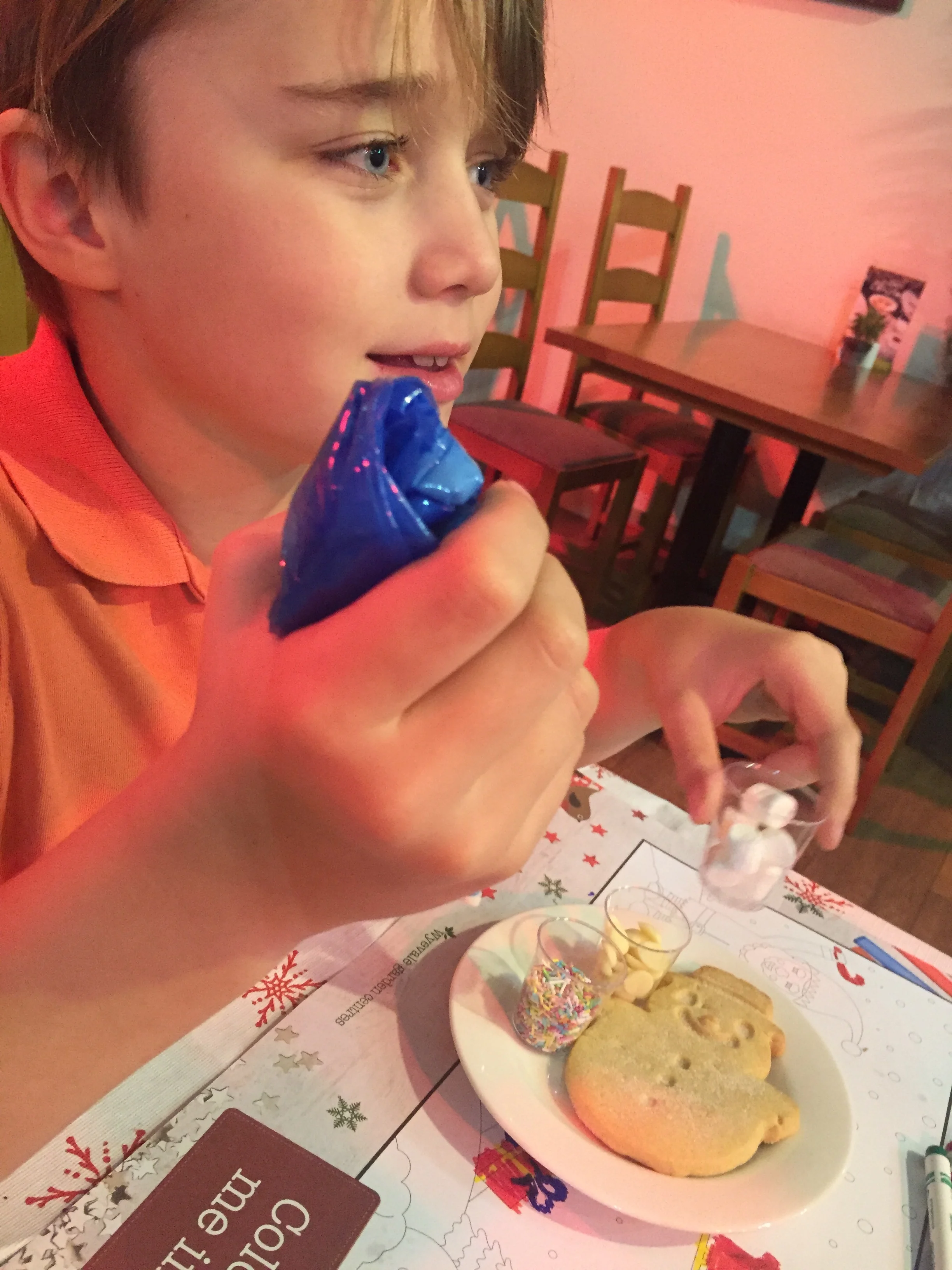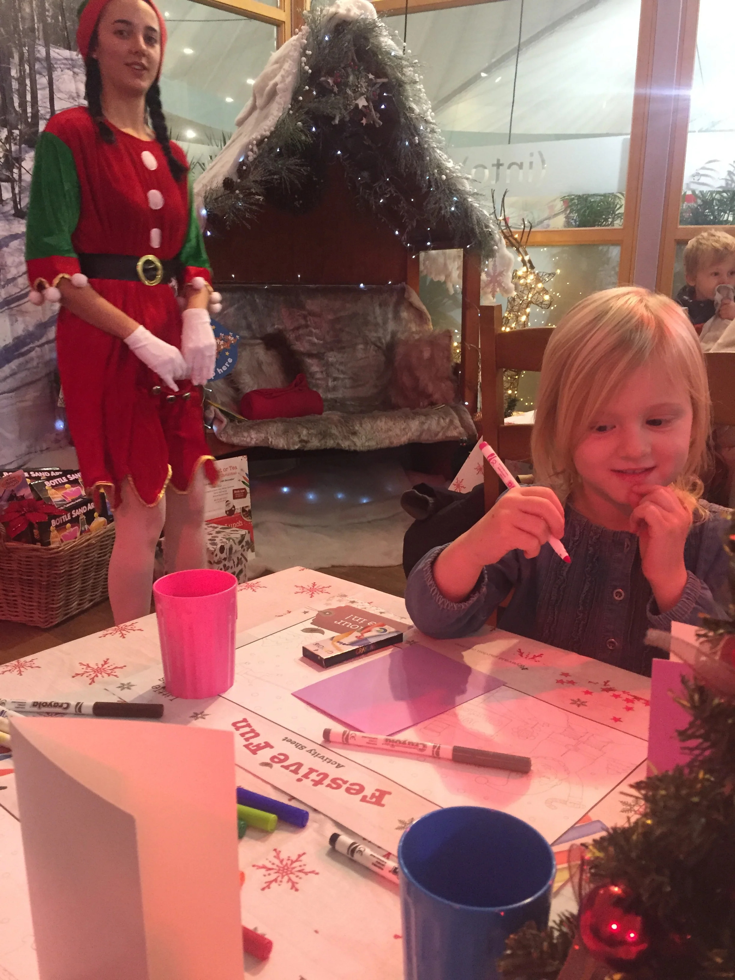When we arrived Santa's helper welcomed us and showed us to our table, where she gave the kids colouring pens and crayons. Throughout the visit, she stayed with us, chatted to the kids, brought us our food and drink; she was great fun and added to the whole experience.