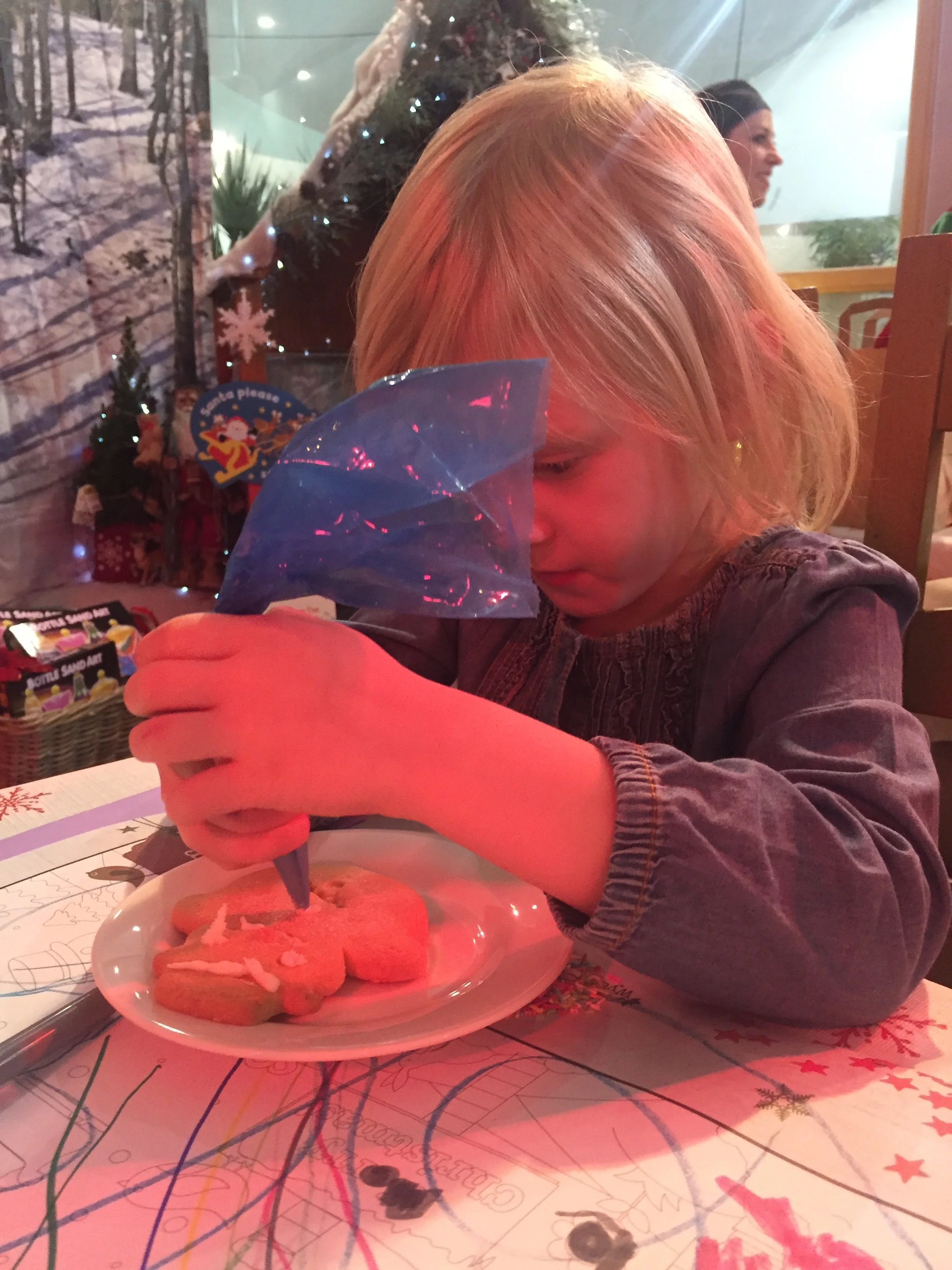 After we had finished eating, Santa's helper brought out some cookies for the kids to decorate, with lots of yummy trimmings.