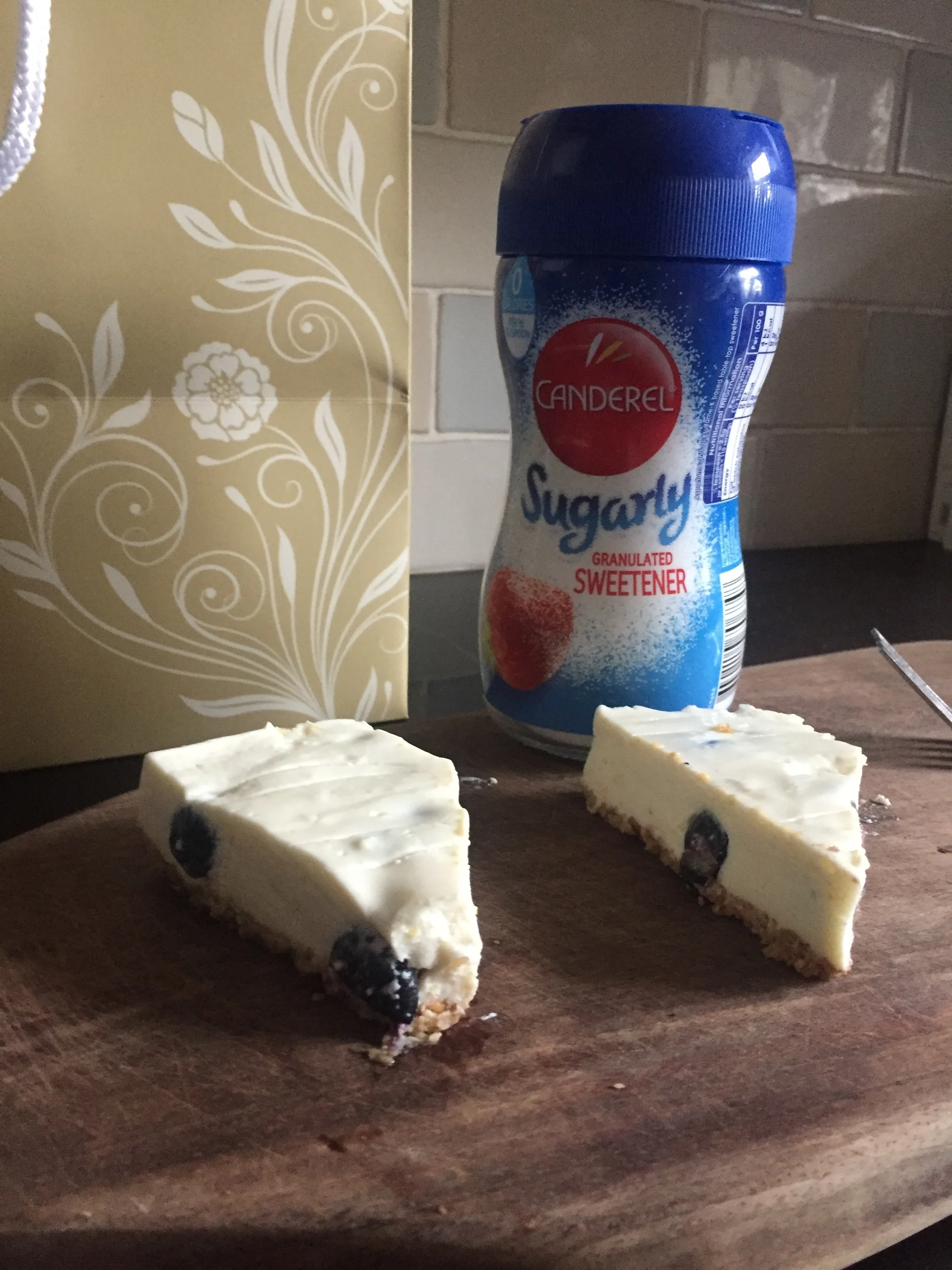 We were sent all the ingredients to make 2 Lemon and Blueberry cheesecakes, one to make using Canderel Sugarly and the other using regular sugar, with the challenge we took the taste test to see if we could taste the difference!