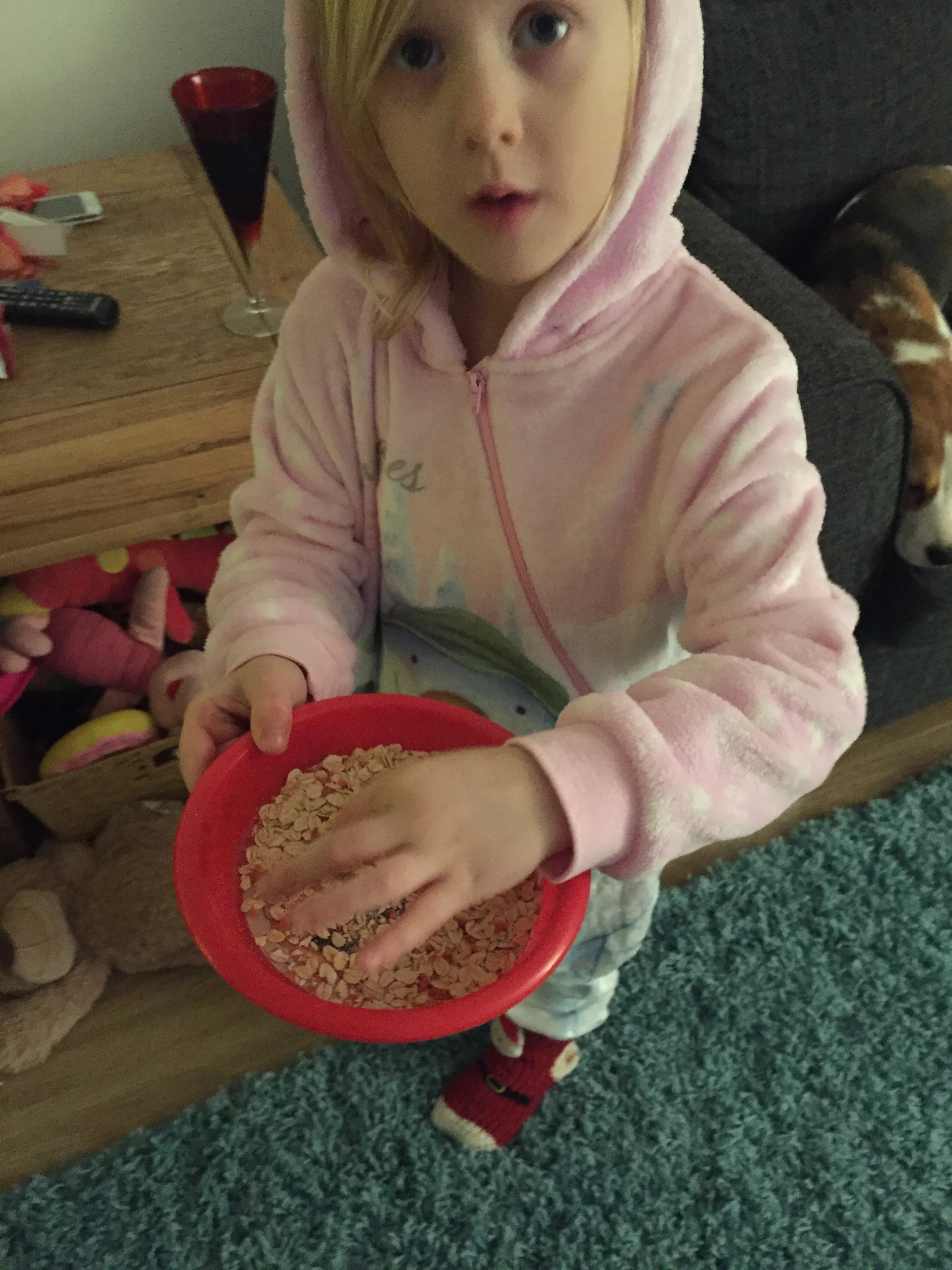 We poured some Reindeer food into a bowl and left it on the side ready and waiting.