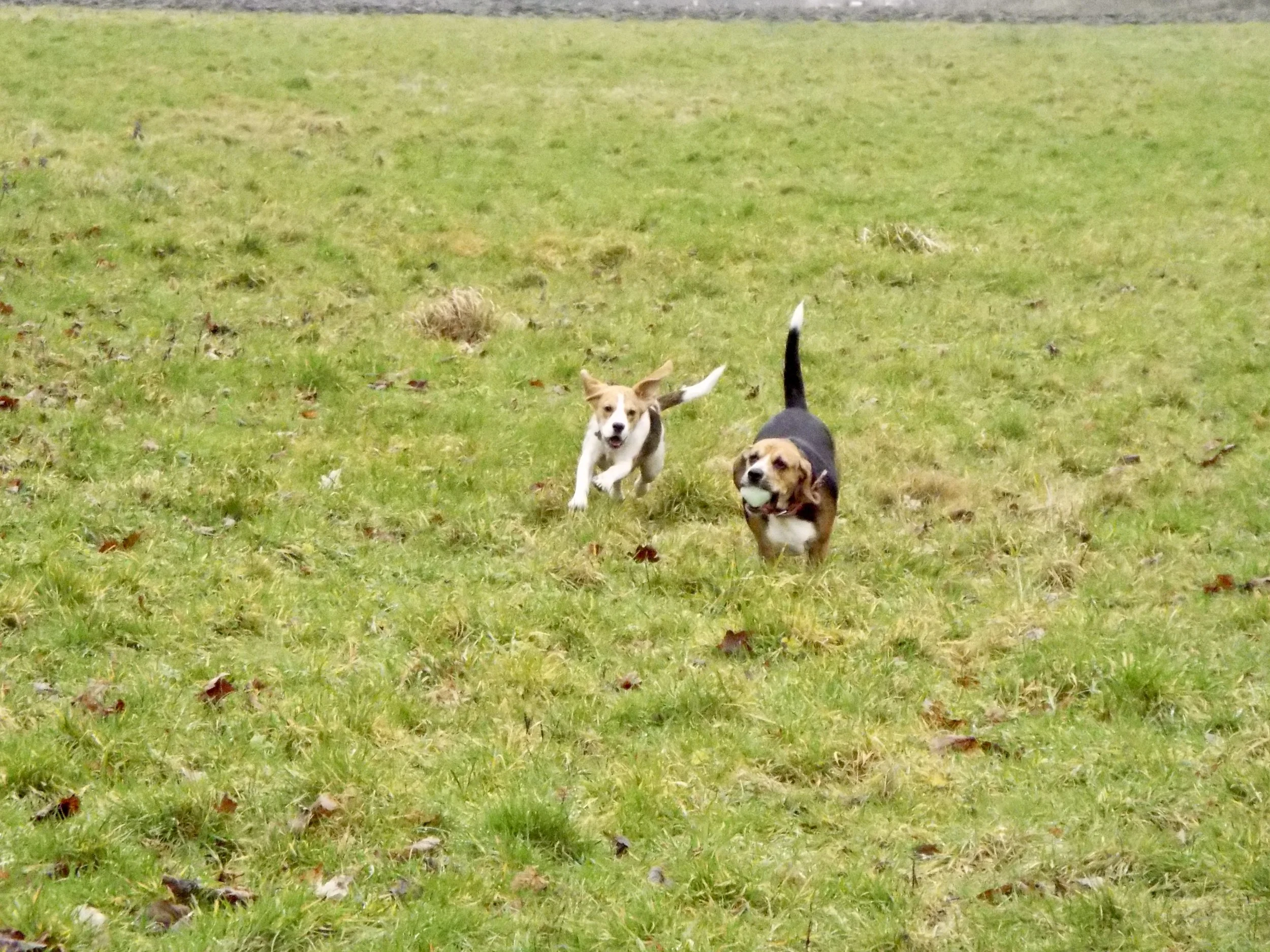 My two crazy lovable beagles, Poppy and Kiwi. They're your typical beagle, full of energy and character. They love nothing more than to run, play, have fun, and be naughty. My 2 girls are very active and keep us active too.