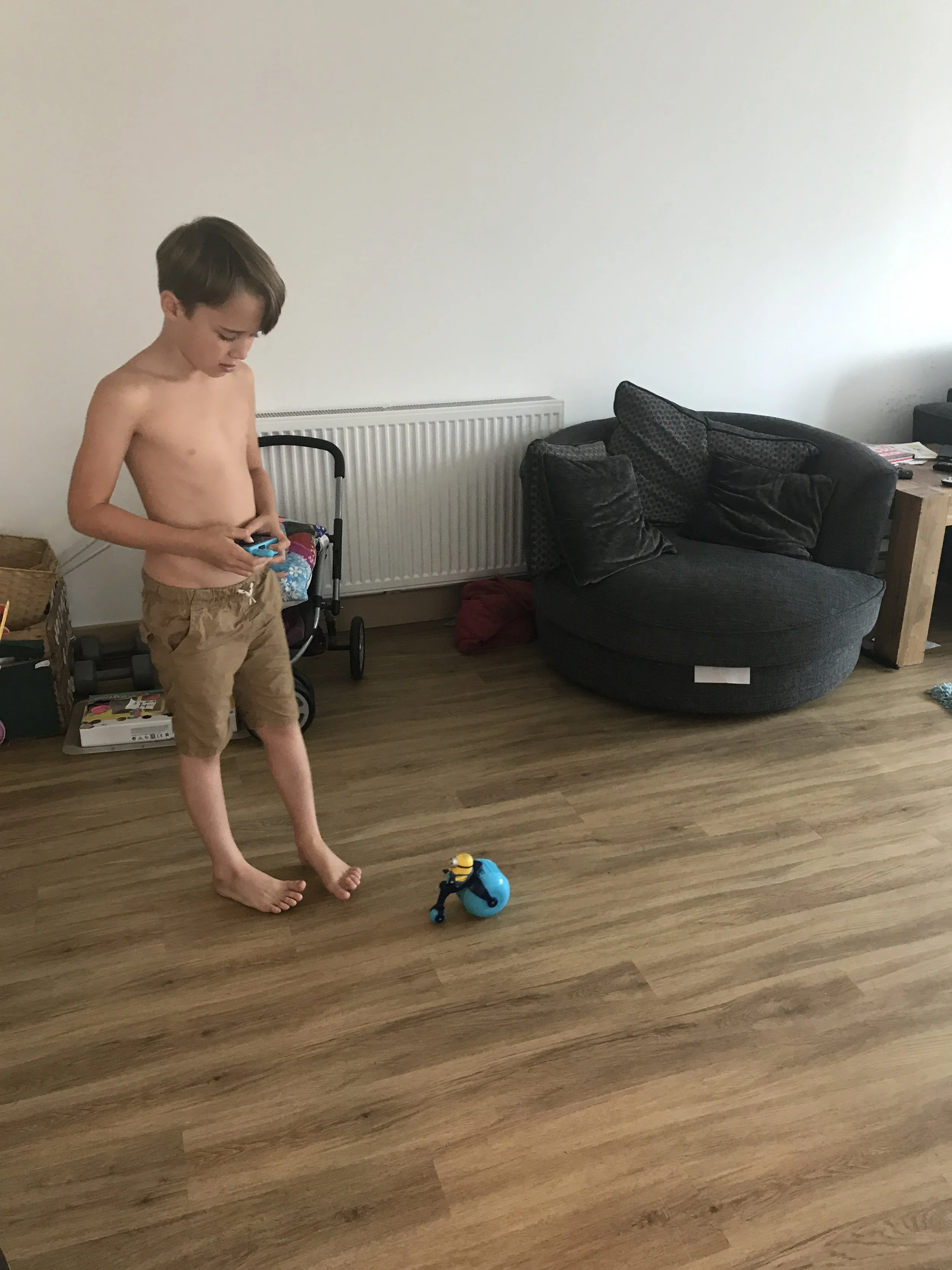 Kid's love RCs and my kids have loved testing out the Stuart Vehicle RC. It's basic, but fun. You can only go forward or backward and it is very easy to control - it's quite fast and looks mega cool with its very large back wheel. It requires 3 AA batteries in the vehicle and 3 AAA in the remote.