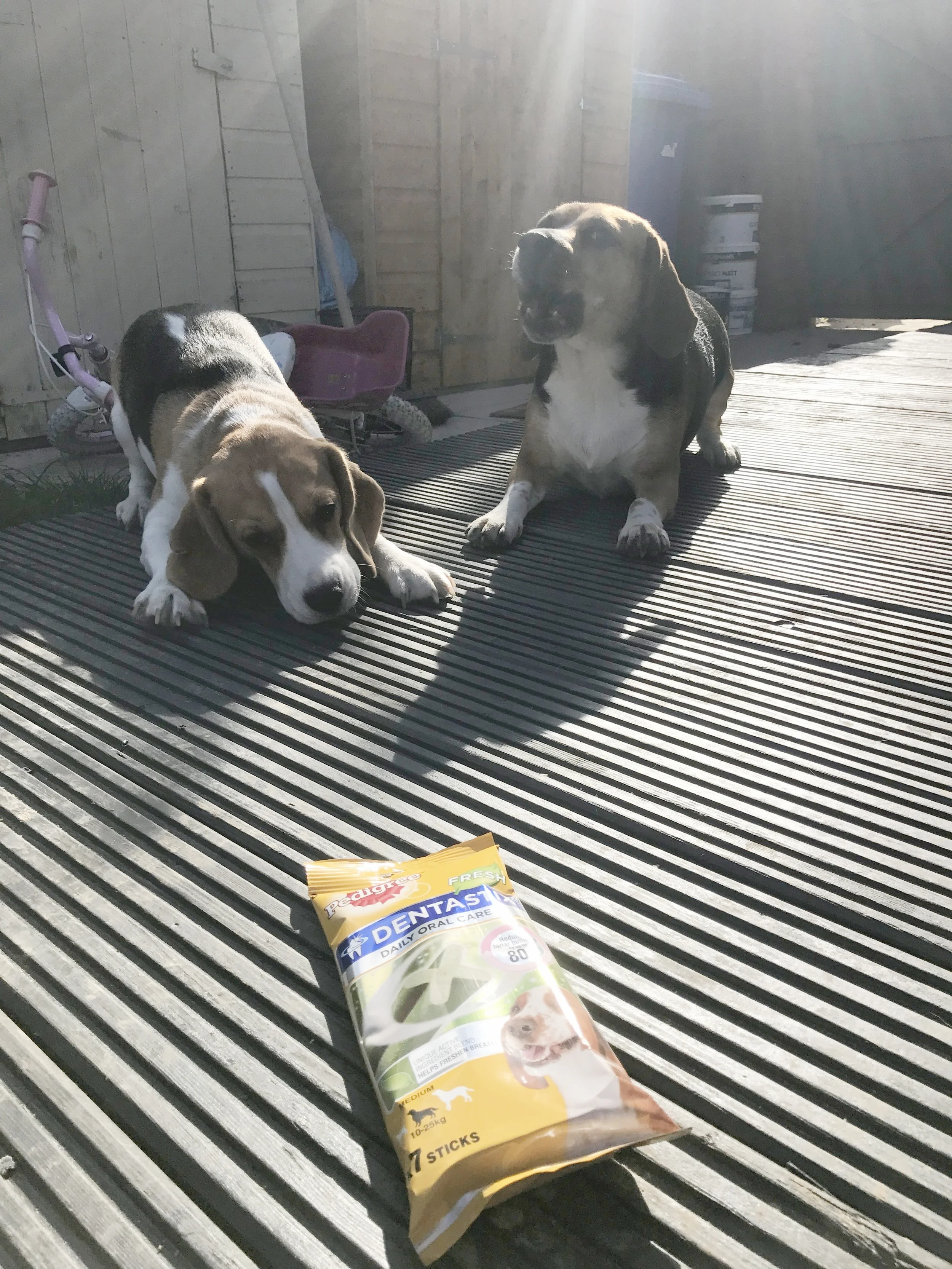 We give one Pedigree Dentastix to each Poppy and Kiwi every day - it's routine now and they love them. It's great as I know it is going a long way to keeping my girl's teeth clean and healthy, and you can see from the photos below, that they get very excited when they see it is time for their Dentastix.