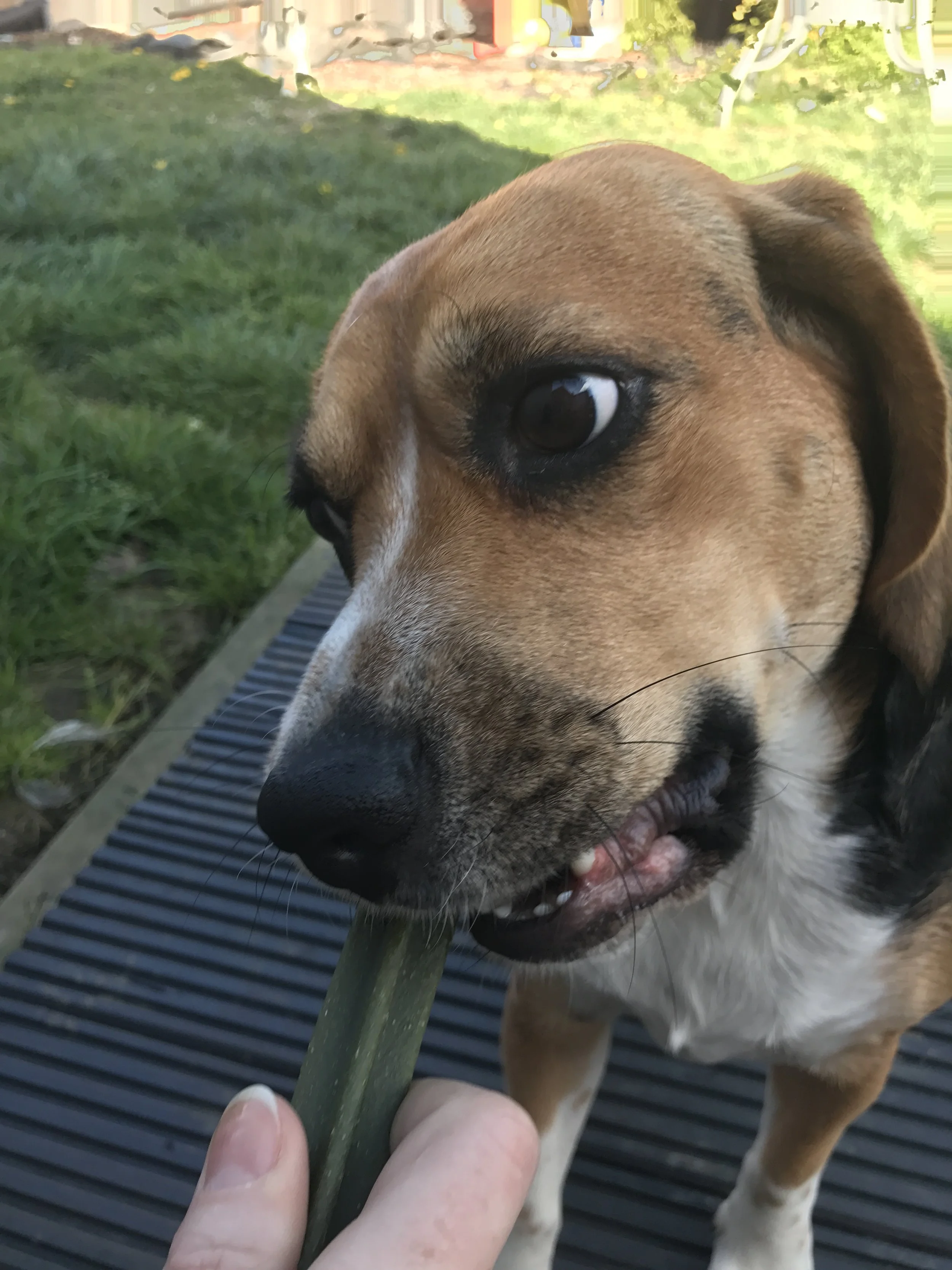 Poppy is telling me to hurry up and to give her, her Dentastix. Poppy always barks and howls at me, Kiwi jumps and dances around excitedly.