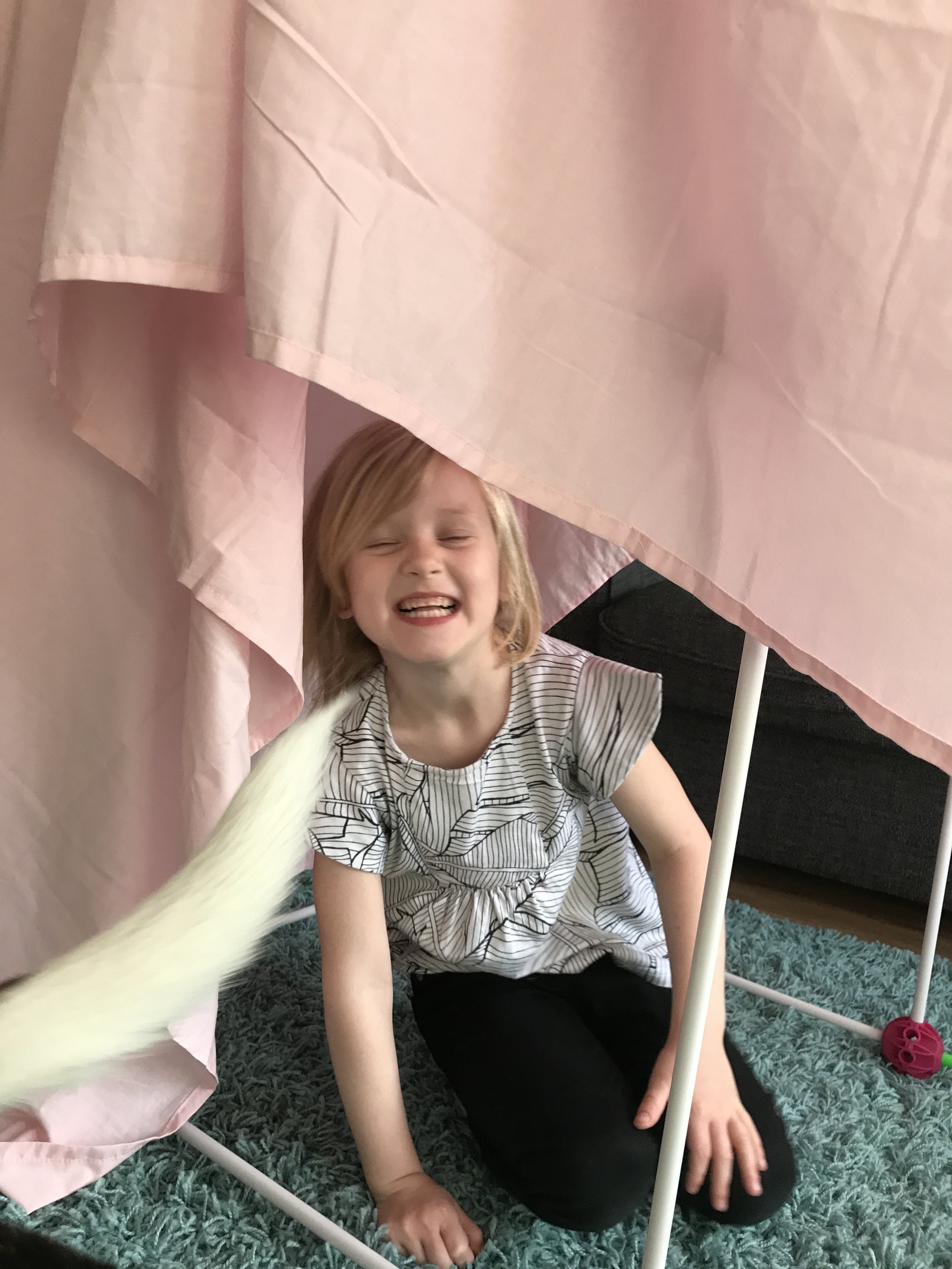 We did pop to the shops to buy a double sheet, in pink, as the sheet that comes with the set is not really big enough. But, Summer uses both sheets and she is super happy with her den.