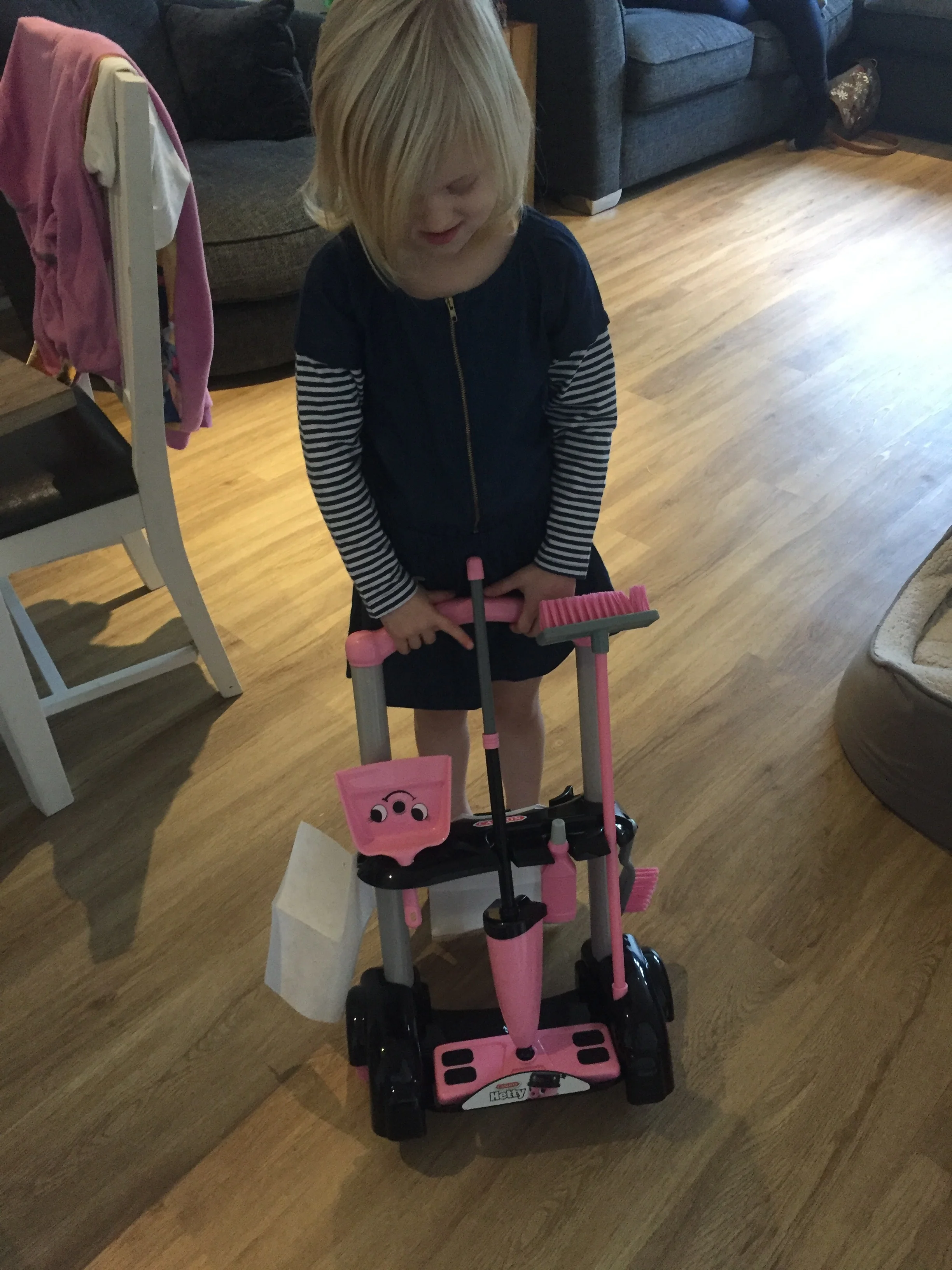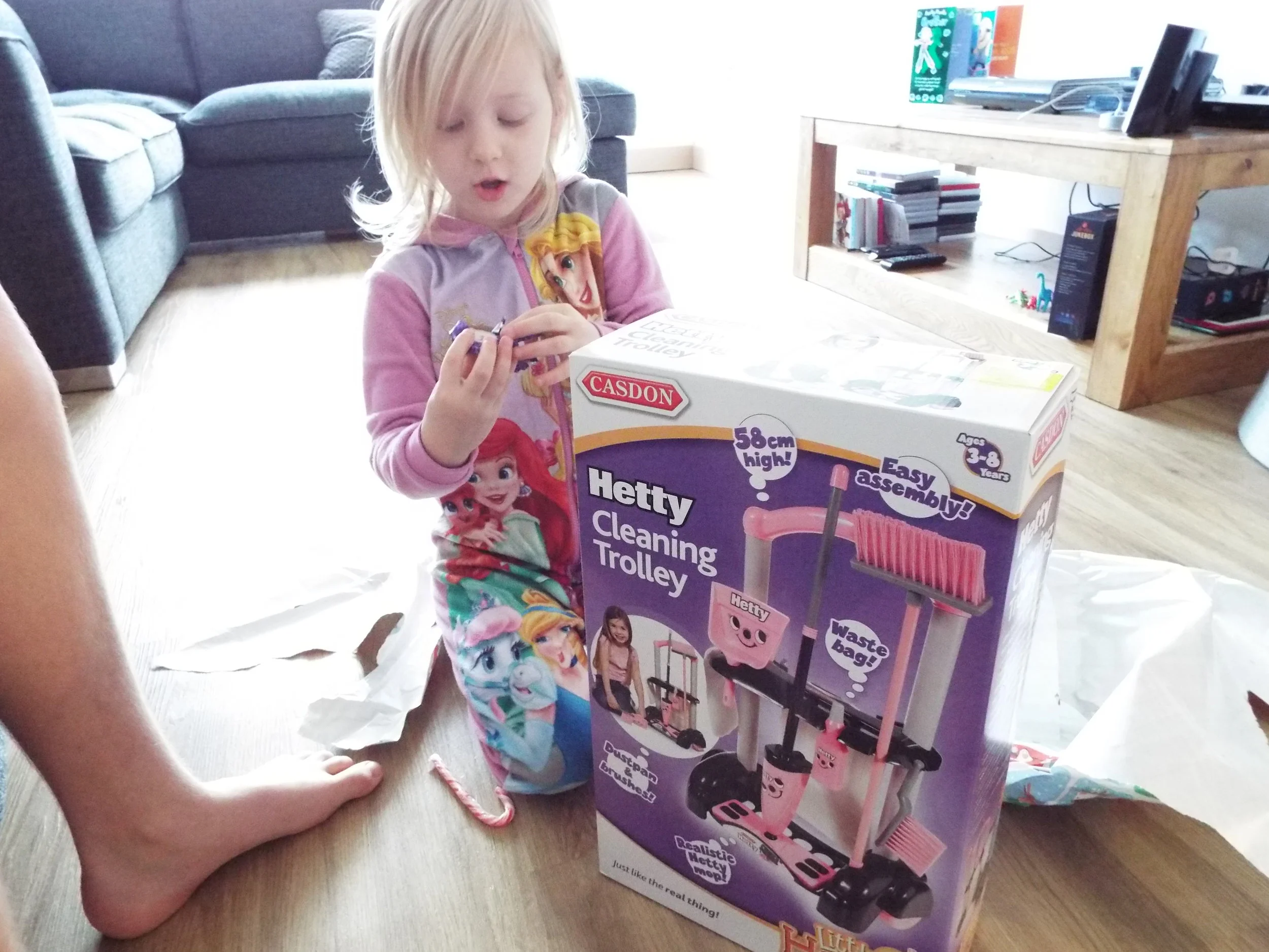 Summer was rather excited to open her new present, and even more excited when she unwrapped the Hetty Cleaning Trolly.