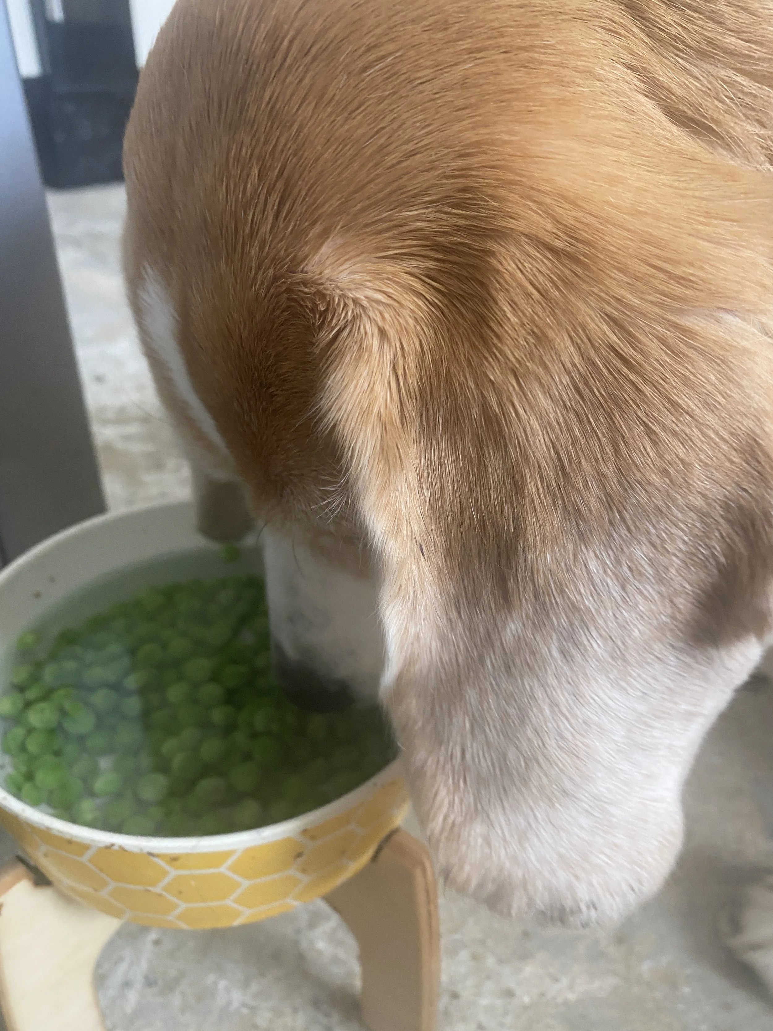 But both the girls love it when I pop frozen peas in a bowl of water. You can do this in a small kiddies pool, or large bowl. Some dogs will get there nose in the water and do a bit of pea bobbing, but Poppy and Kiwi are not keen on water, so I just pop a handful of frozen peas in their bowls, and hey pesto, it works a treat, they can get the peas without having to immerse their noises into the water too much.
