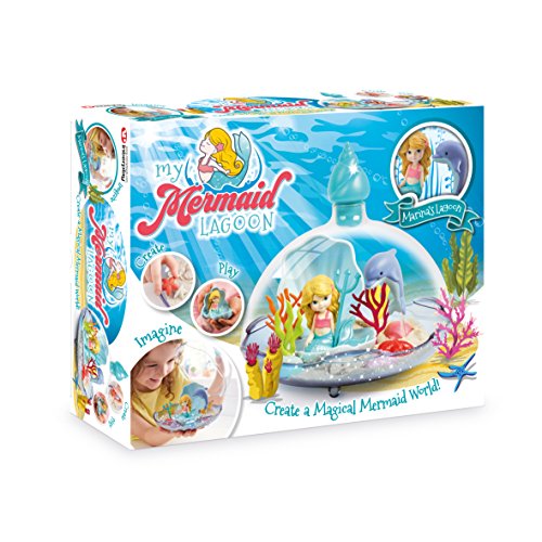 With My Mermaid Lagoon, you can create many different Lagoon settings for your mermaid. All done in the display bottle, which is also perfect for displaying your magical mermaid world on the shelf. With the glittery play sand, you can mold, sculpt and play. As well as the mermaid and her friend the seahorse, there are lots of accessories included: coral, clamshell, and rocks.