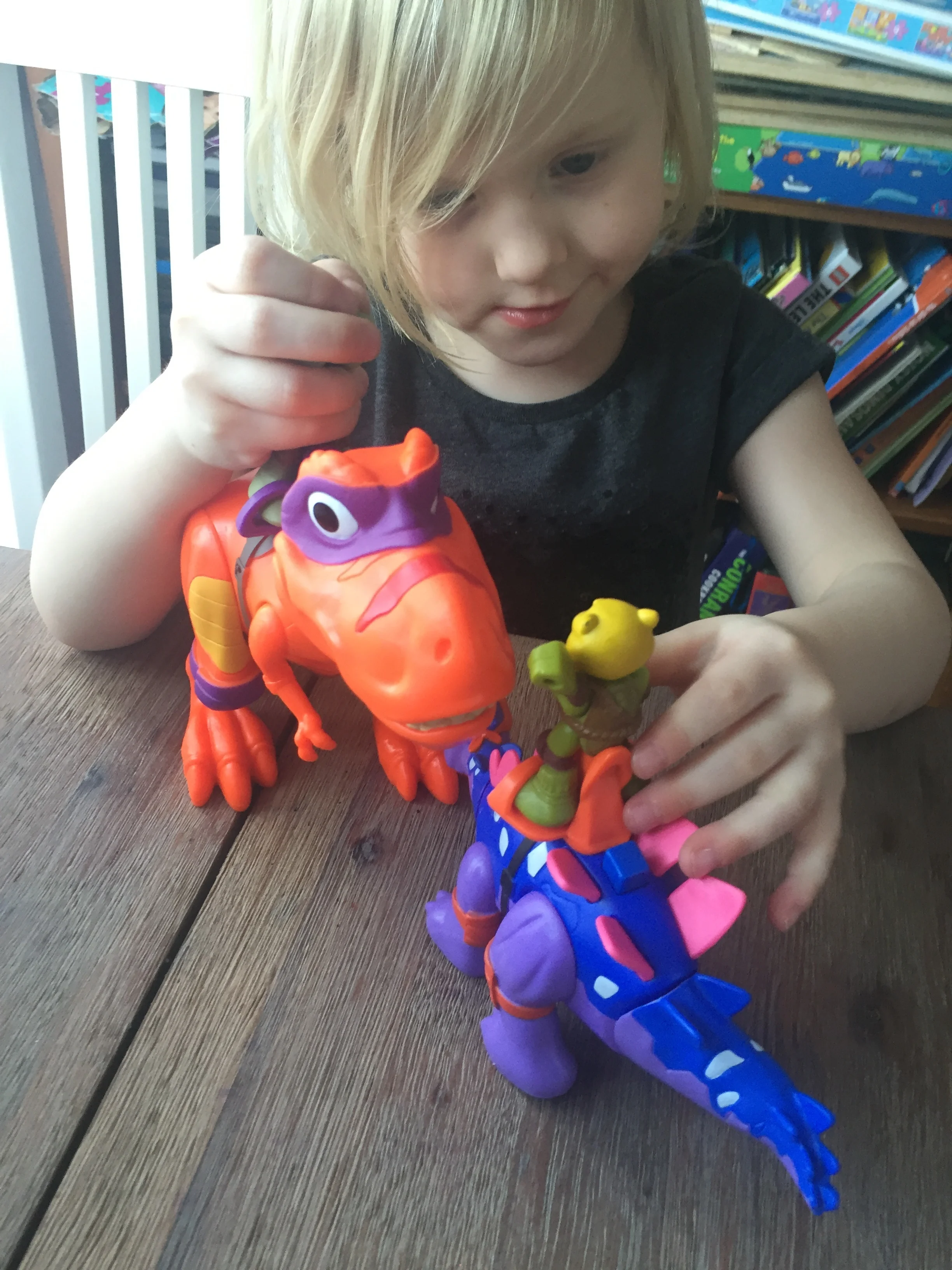 Jacob loves Teenage Mutant Ninja Turtles, but so does Summer, thus, both Jacob and Summer enjoy playing with Half-Shell Heroes Dino range. The toys are great for imaginary play, role play - hours of fun. Great for children aged 3 and above.