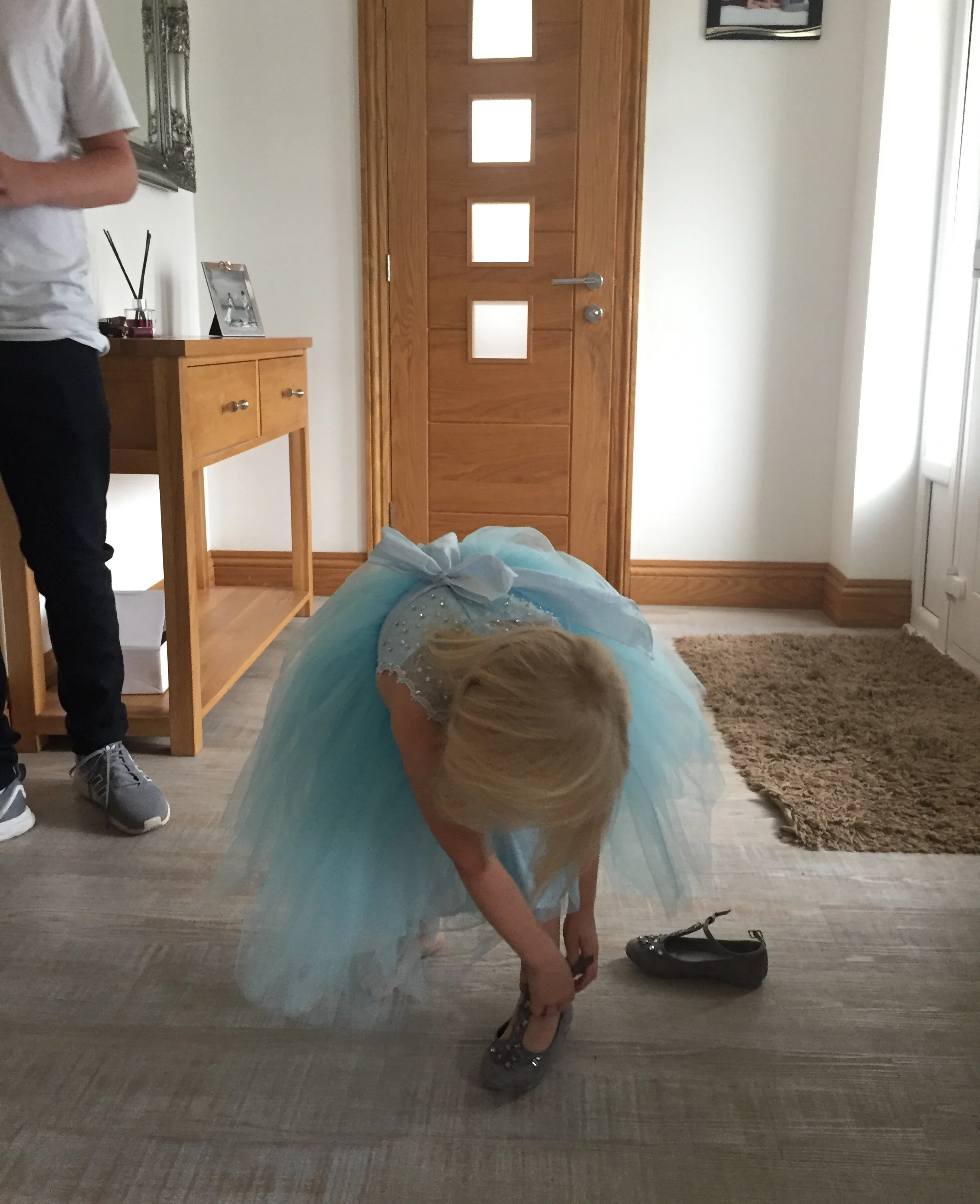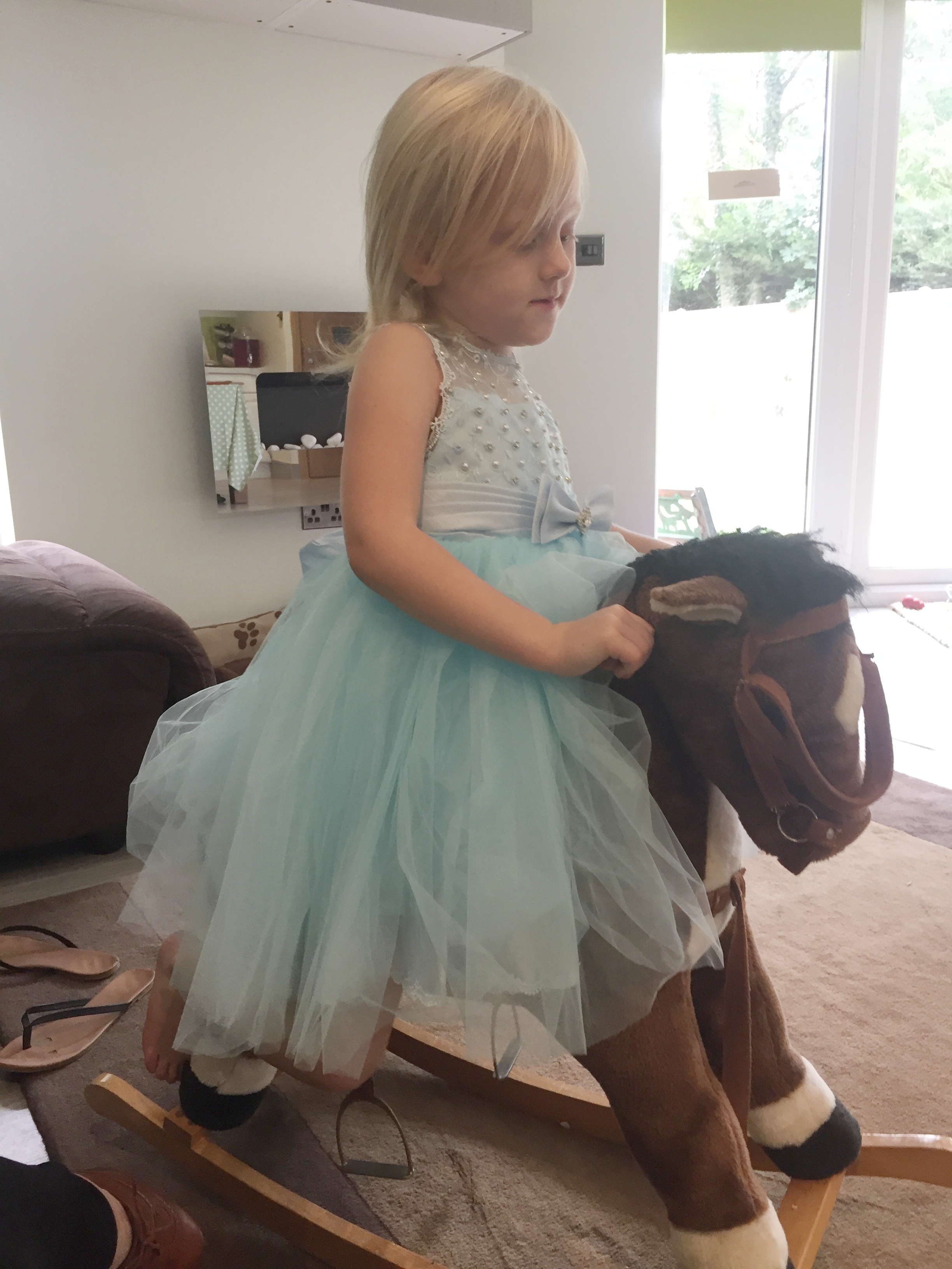 We were sent this gorgeous blue party dress, which Summer absolutely loves - she says she is a princess now. It's a classic flower girl blue combining trending lace and a diamante encrusted bodice, with an organza netted skirt and waist sash. Also available in a classic Ivory colour.