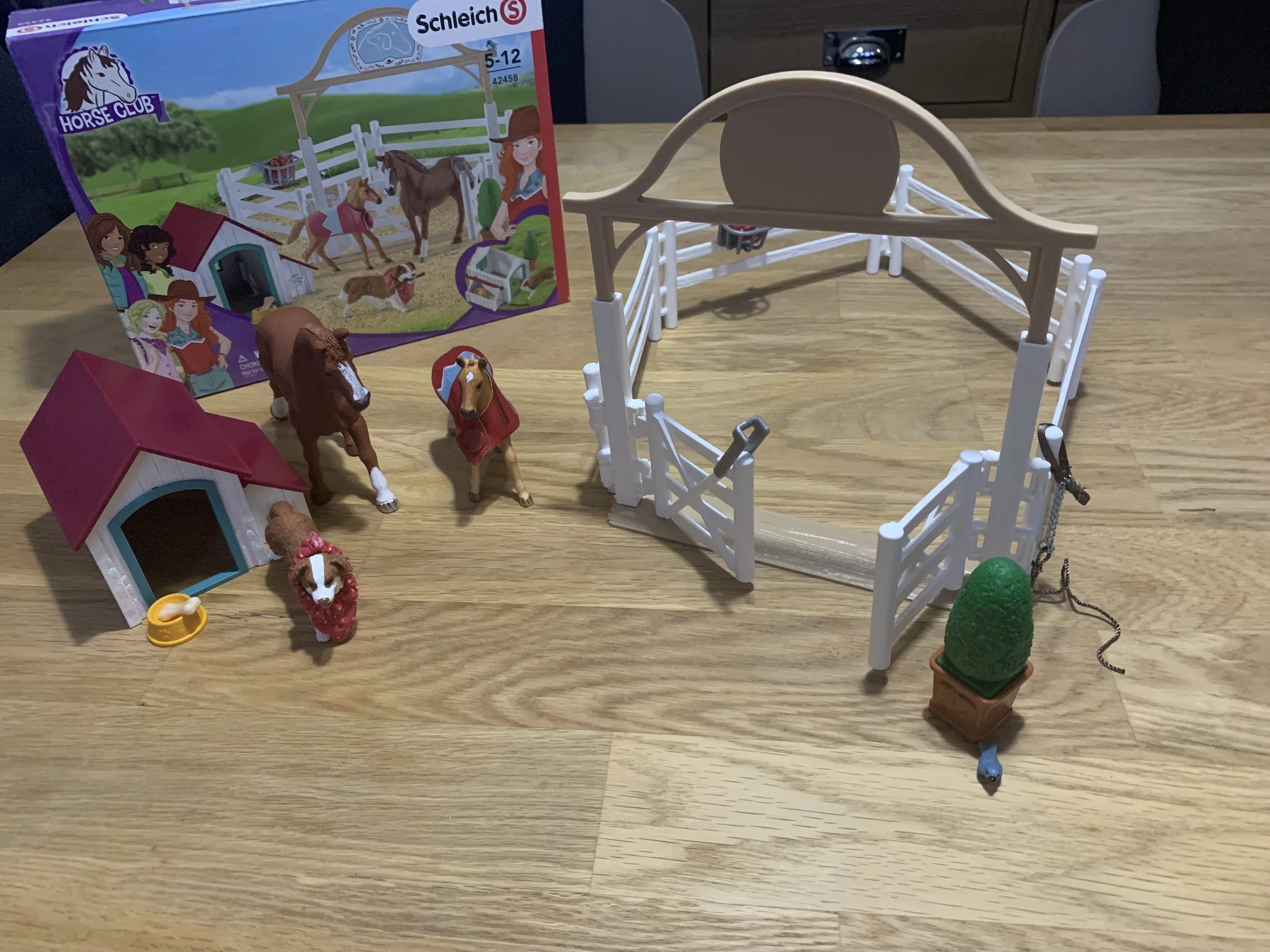 The Hannah’s Guest Horses with Ruby the Dog set has to be put together (you have to build the paddock and dog house), there are instructions included and I found I was able to put the parts together very easily. When it was up, it look fab.