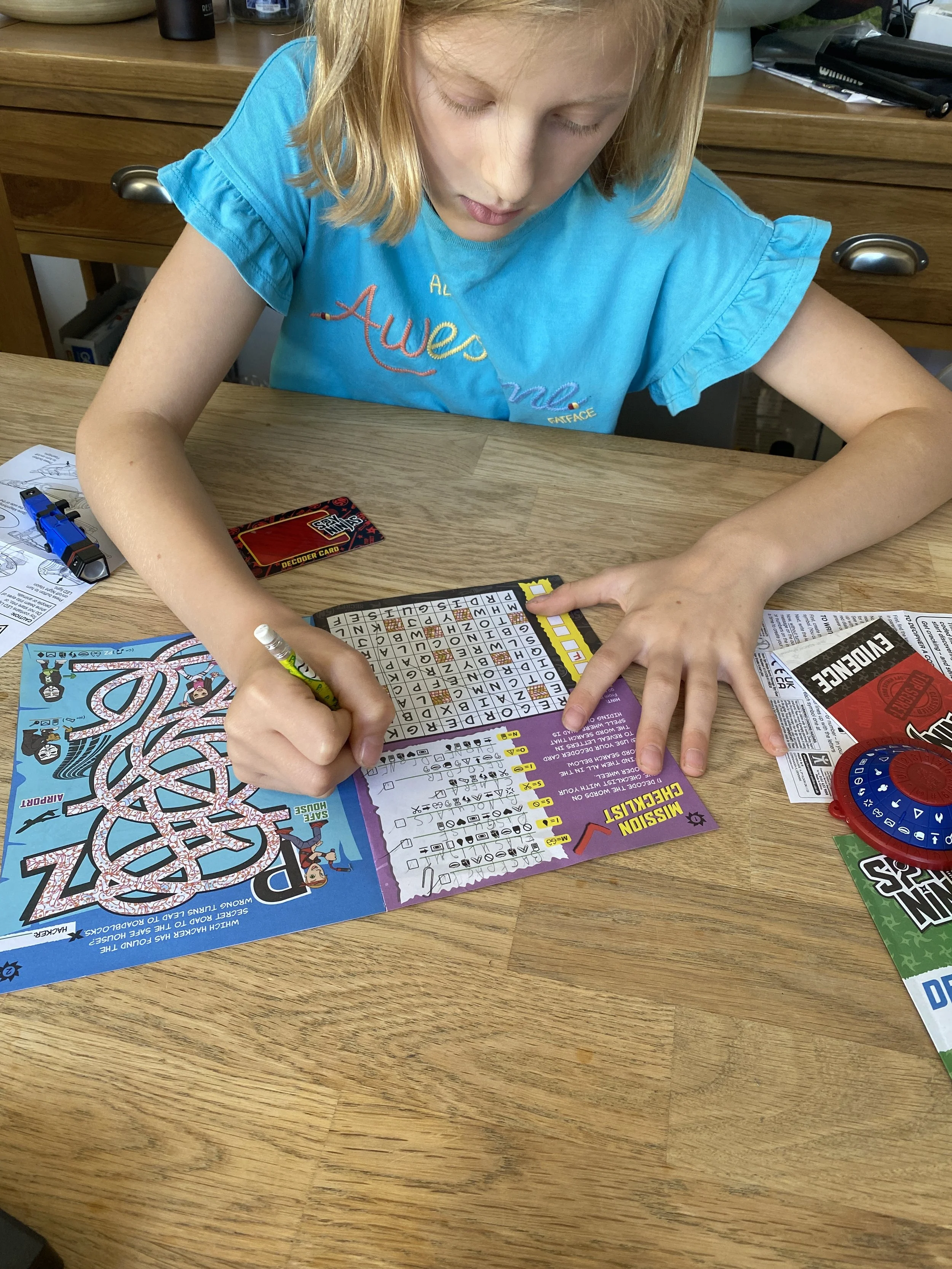 With the Night Vision Mission Kit, Summer quickly got engrossed and fully engaged in the two Missions activity booklets and completed all the missions. Her favourite was using the Decoding Wheel. Using the wheel with the activity booklet, you decipher what the letters/words are which then allow you to complete the activity.
