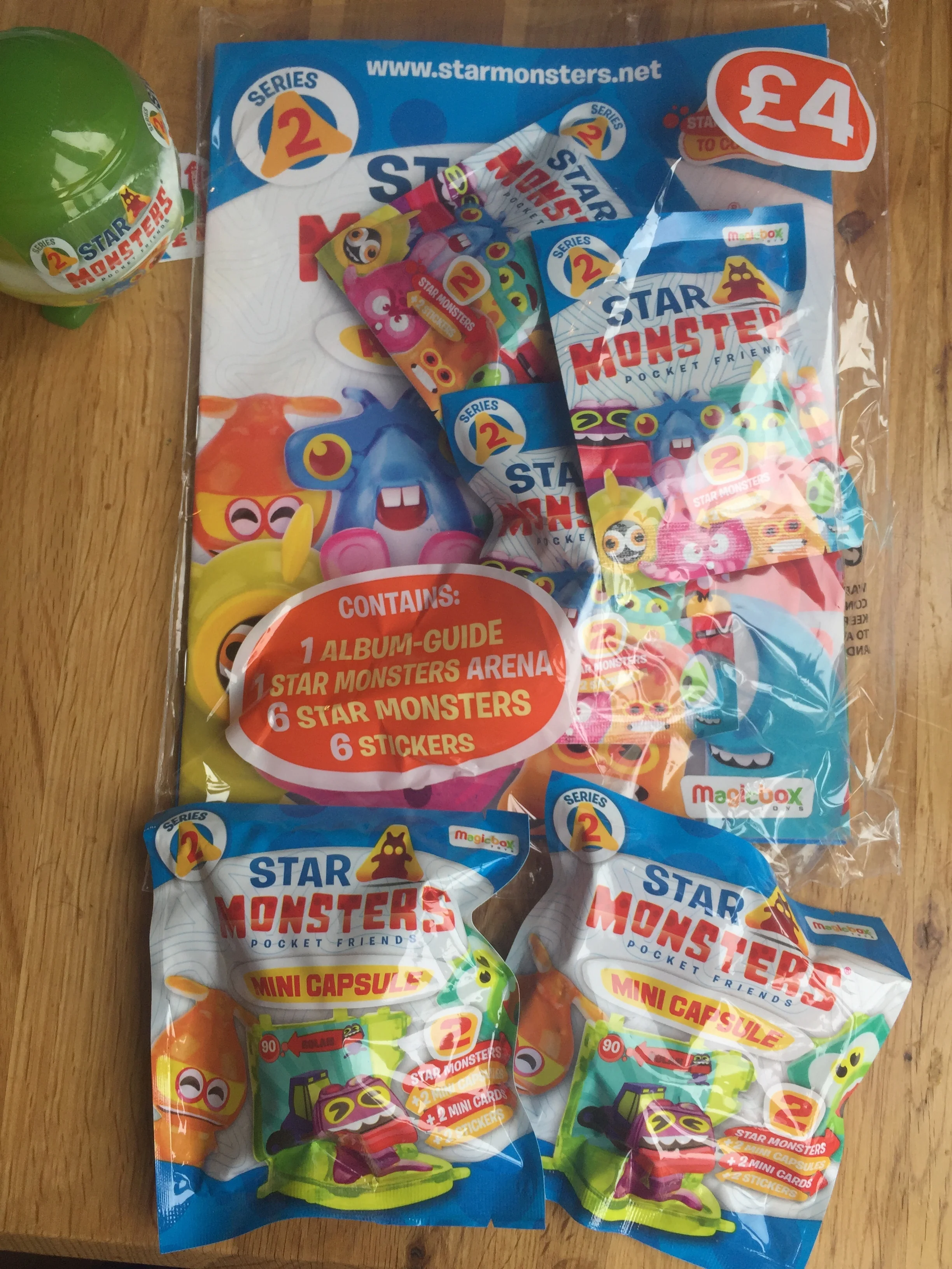 Each blind bag pack contains two Star Monsters for £1, and you also get two stickers in each pack too. With the starter pack it includes the sticker album. So you get to collect the Monsters and their matching stickers, which you fill the sticker album up with.