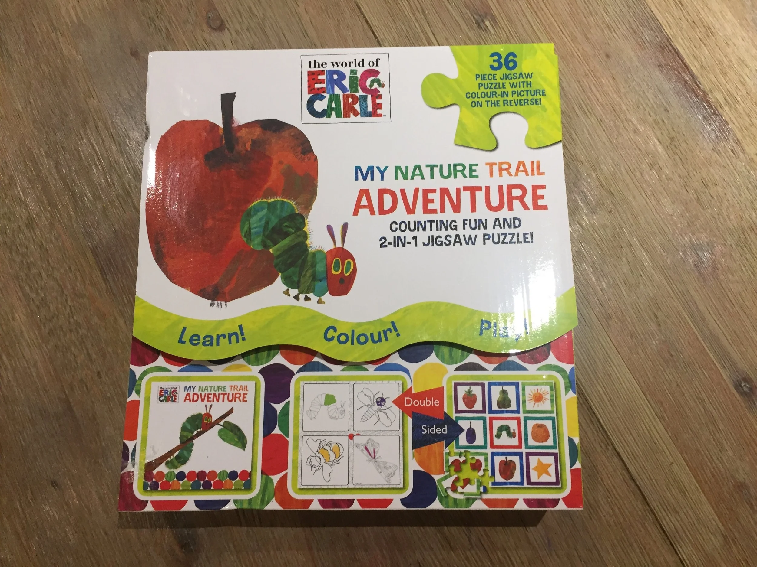 After putting the puzzle together, you can turn it over for some fantastic fun coloring in, which features insects. The My Nature Trail Adventure book features the fabulous colourful illustrations with, simple counting picture puzzles.