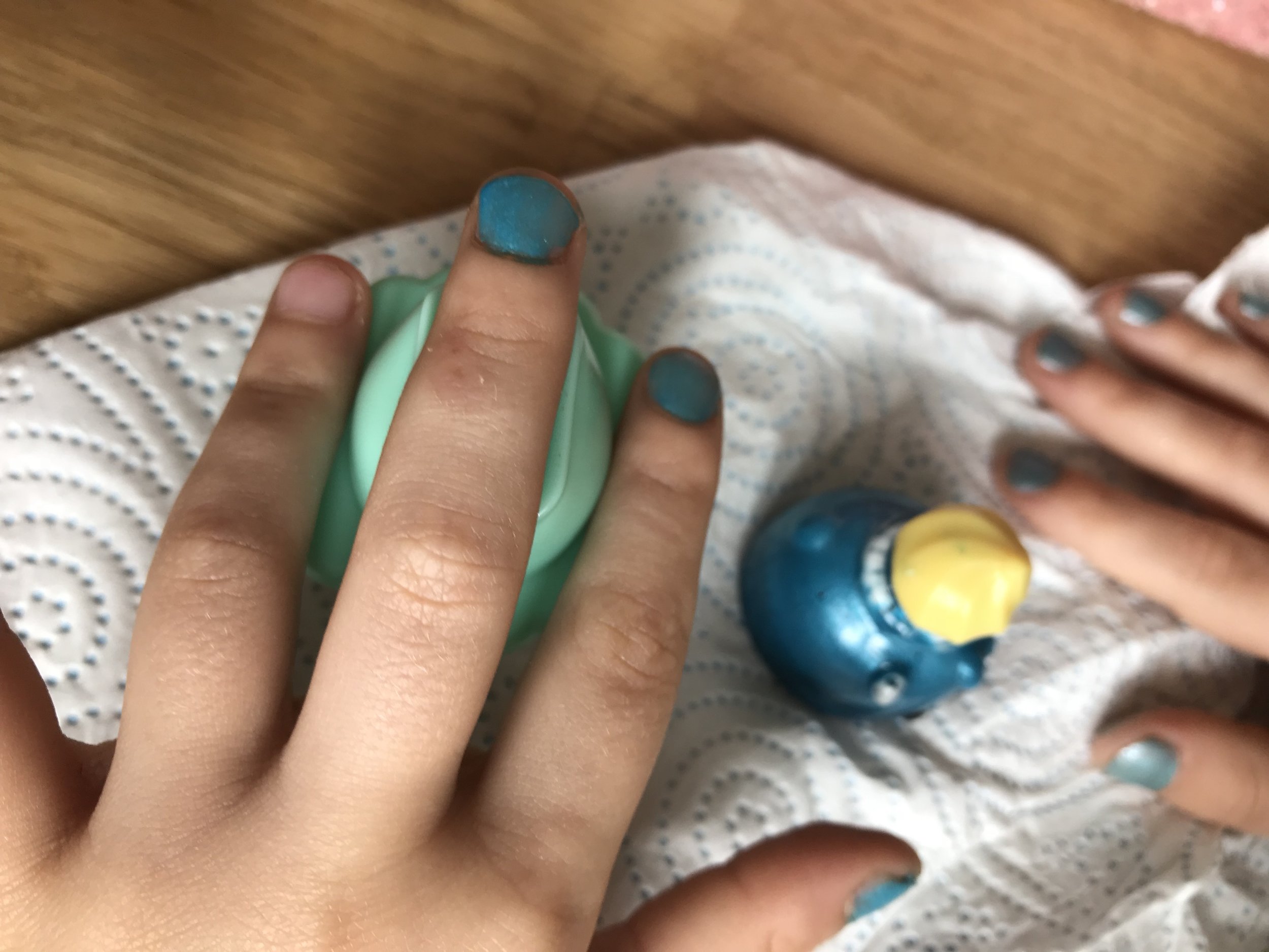 We both loved the finish nail polish we made. We made blue here, next one Summer wants to make a peach colour polish.
