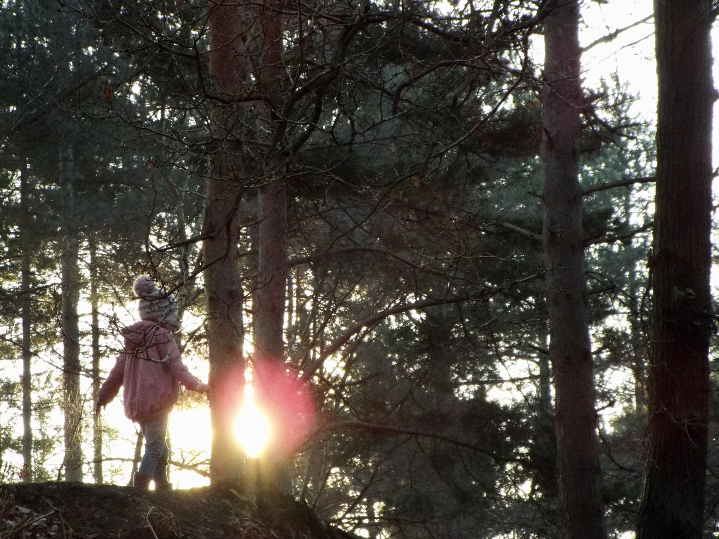 In the woods we went, the kids love to run up and down the hills and through the trees.