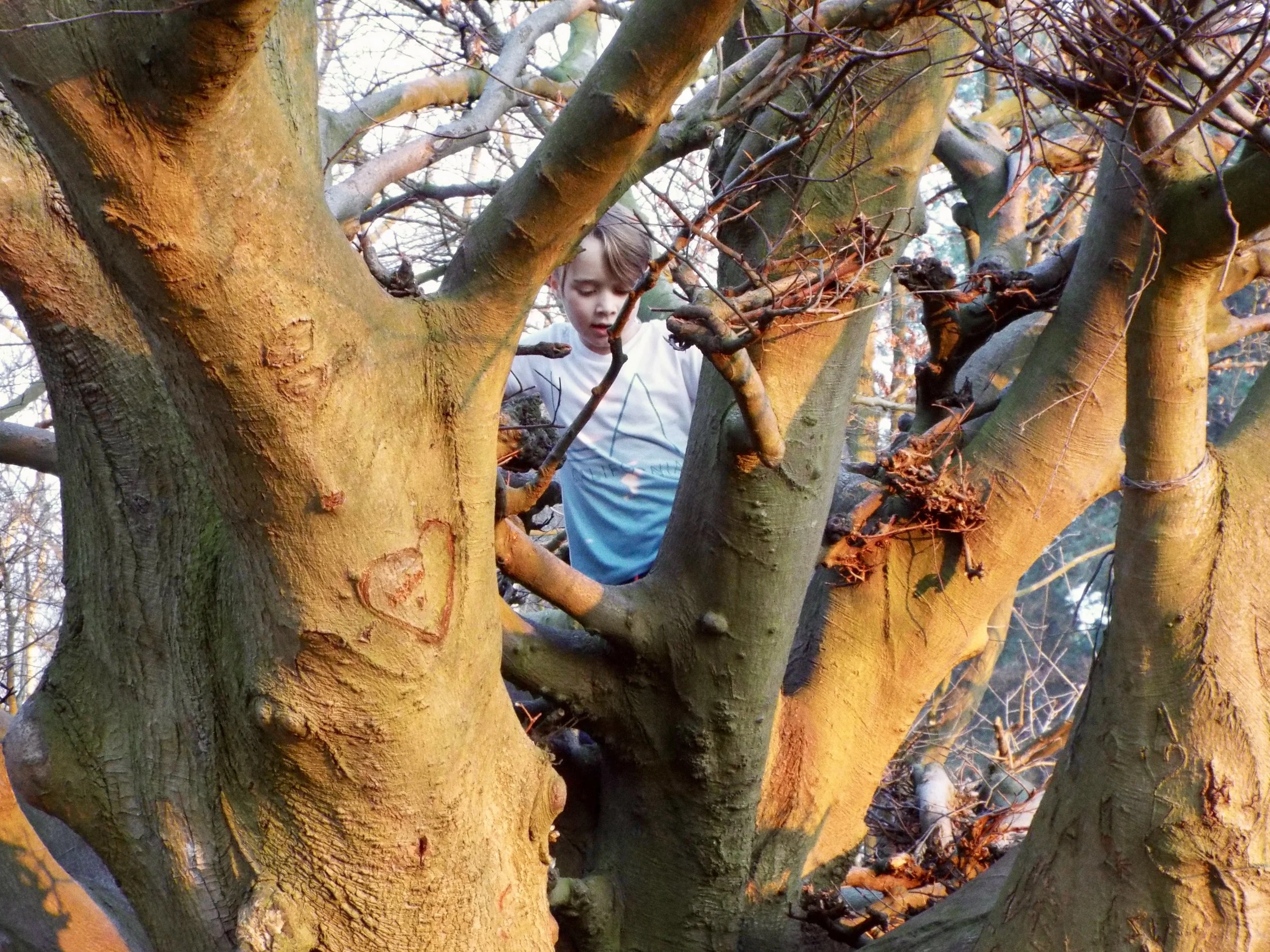 The kids always finish off our walk climbing this old tree. It's near the car park and it's their last blast of fun before we leave the woods.