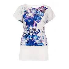 Cream and Blue Crepe Flower Print Top: A flower print design with short sleeves and chiffon hem. Would wear really well with the slim trousers. RRP £19.99